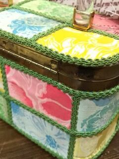 鮮やかなグリーンのフェルト生地でミラー付き。