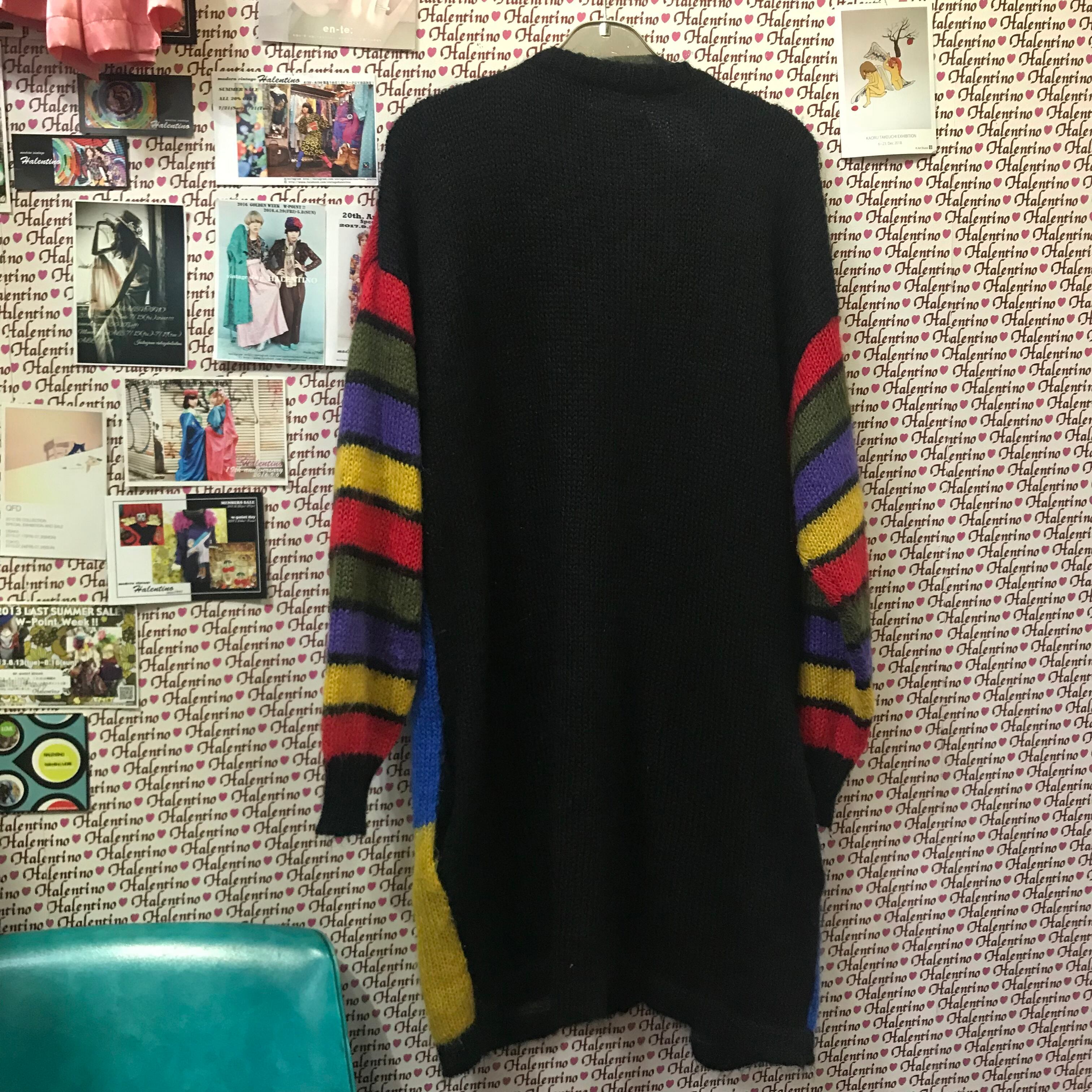 配色 ロングニットカーディガン