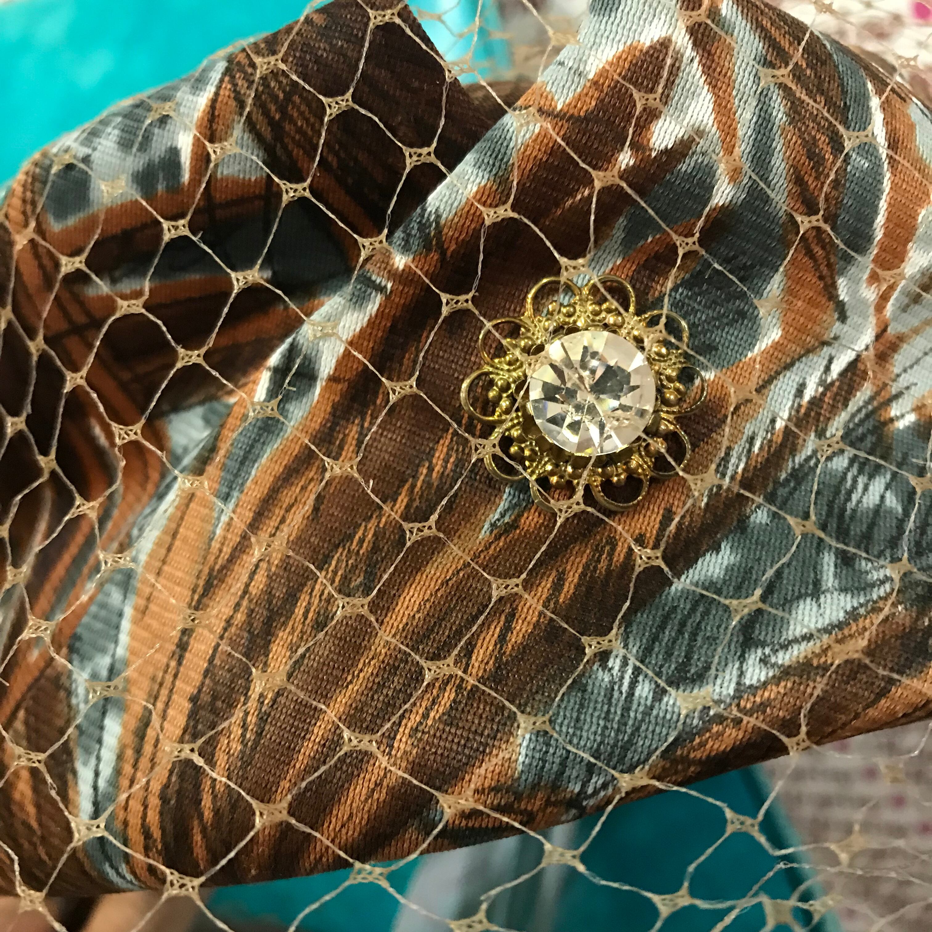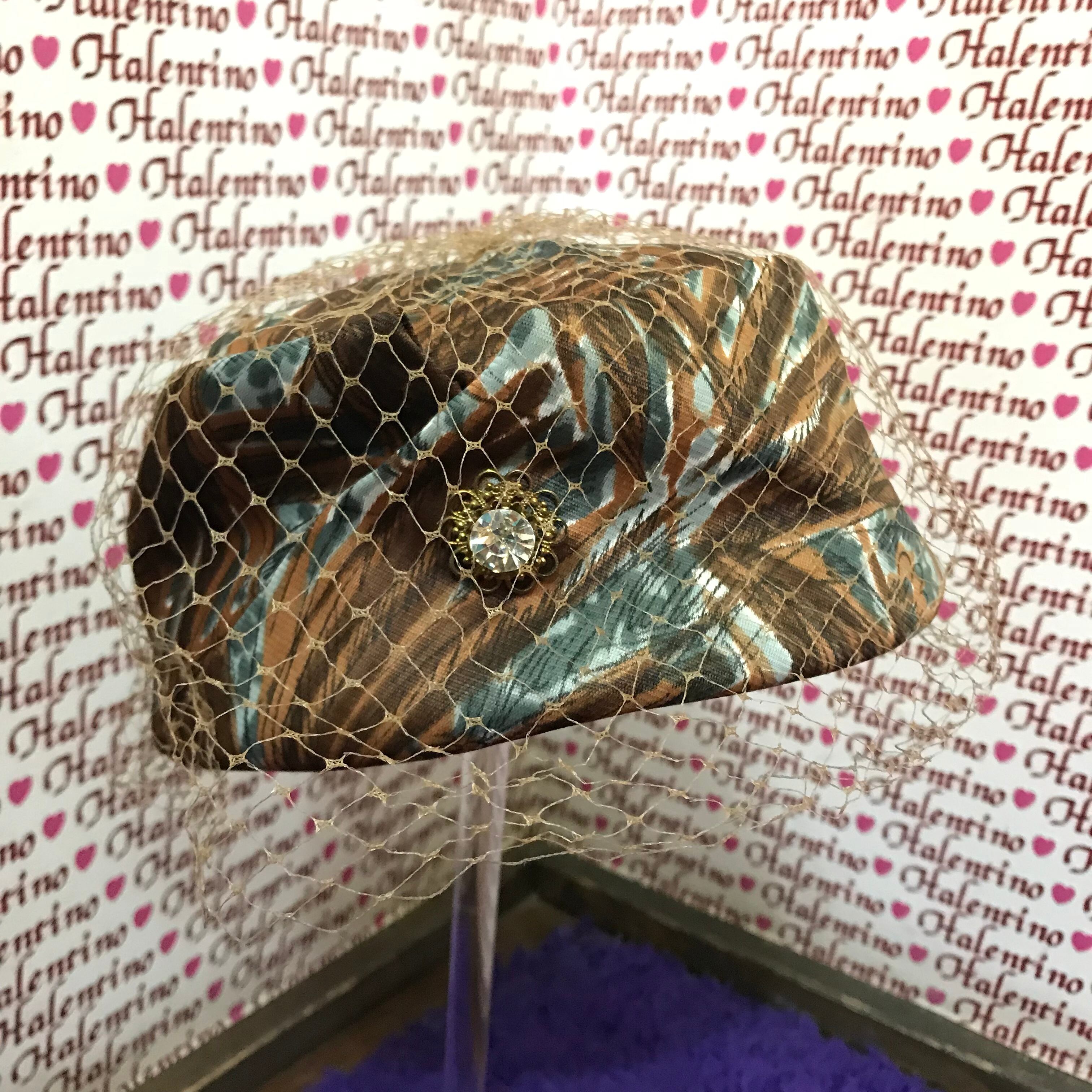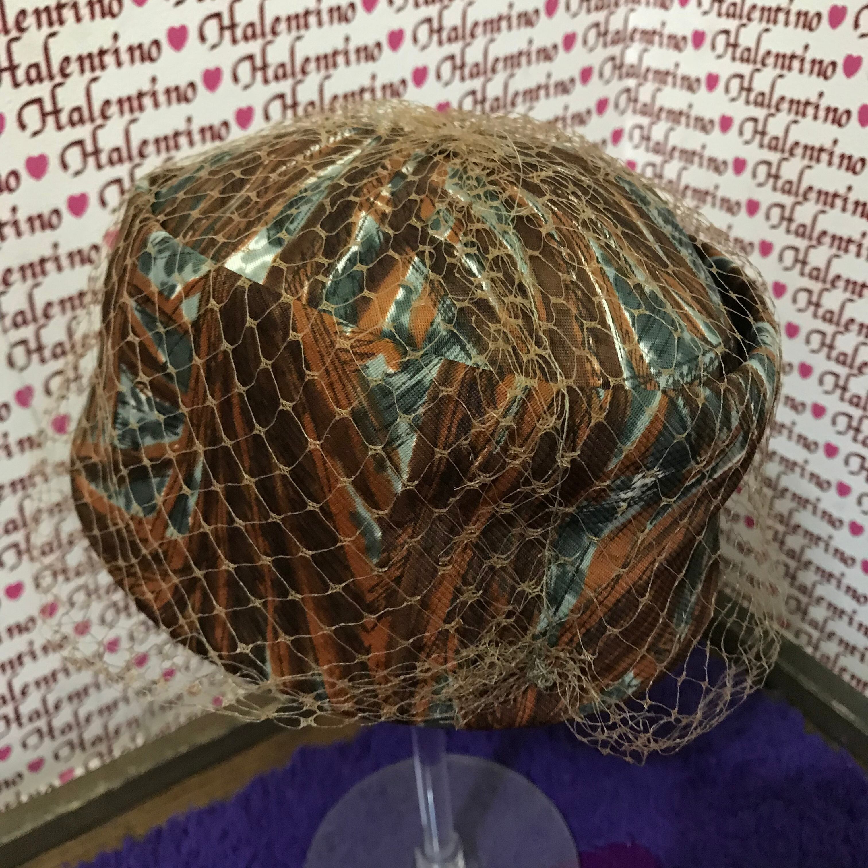 50s ヴィンテージ ファブリックにネットをかぶせたトーク帽
