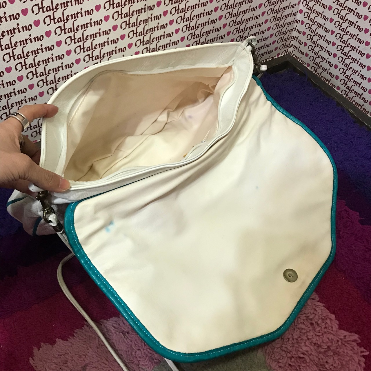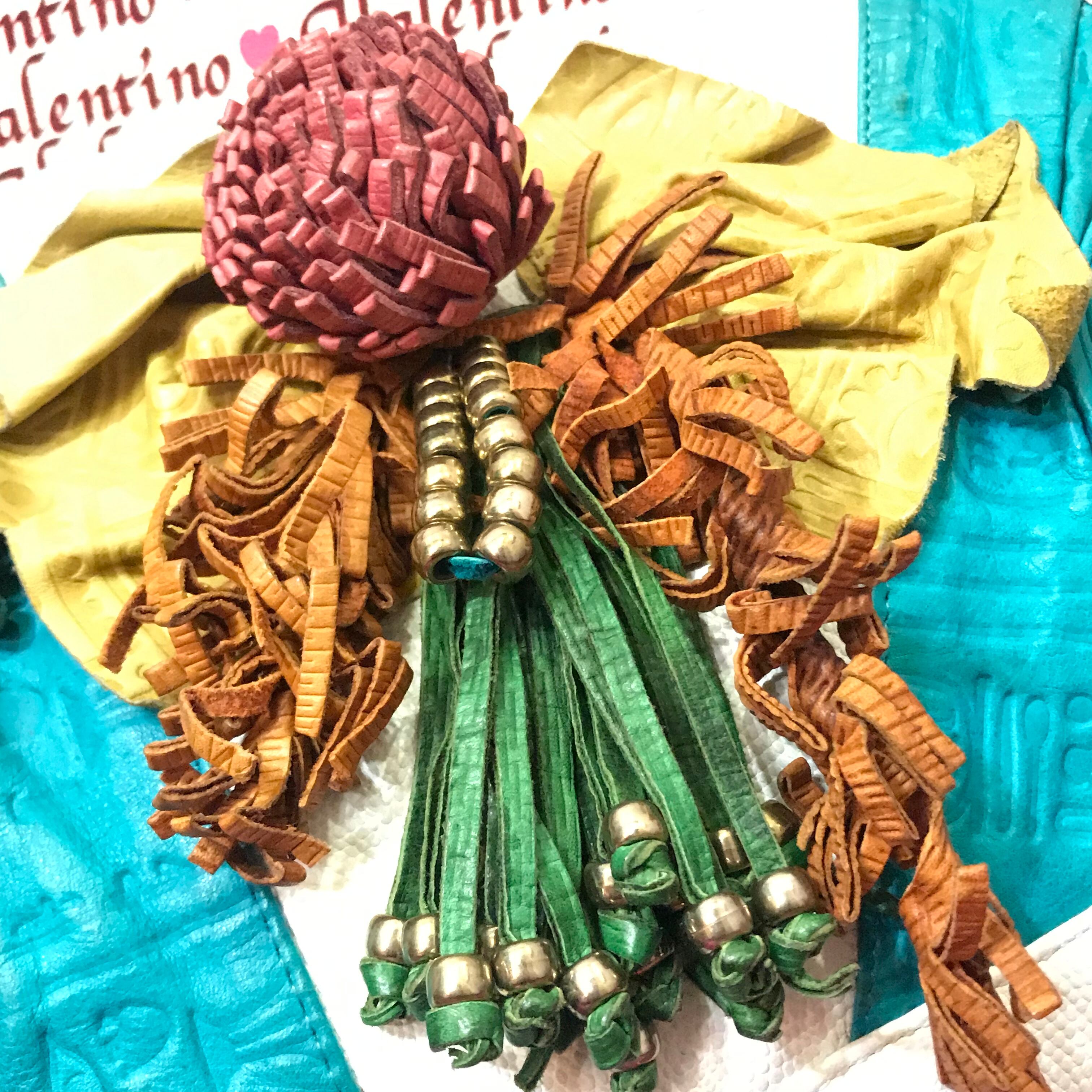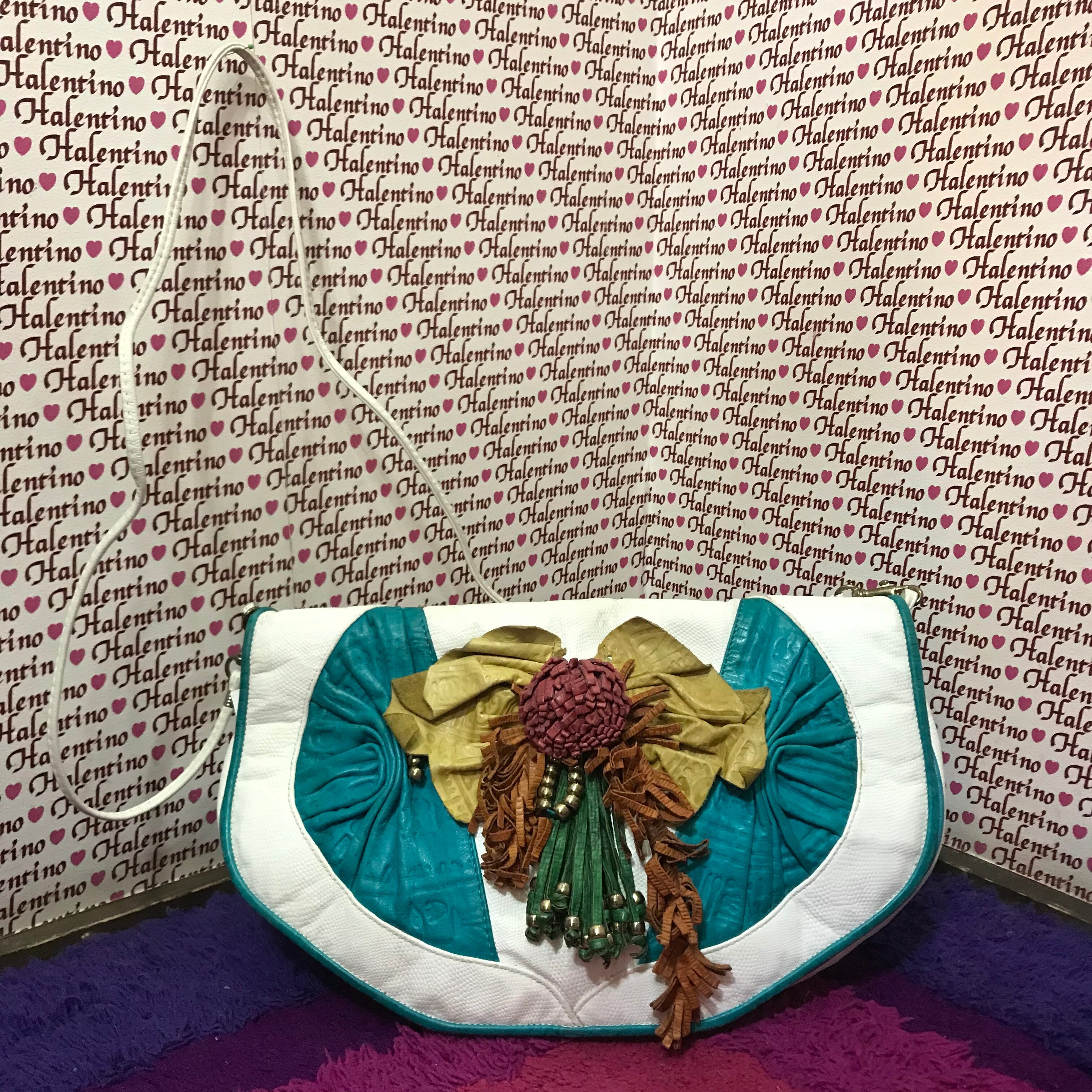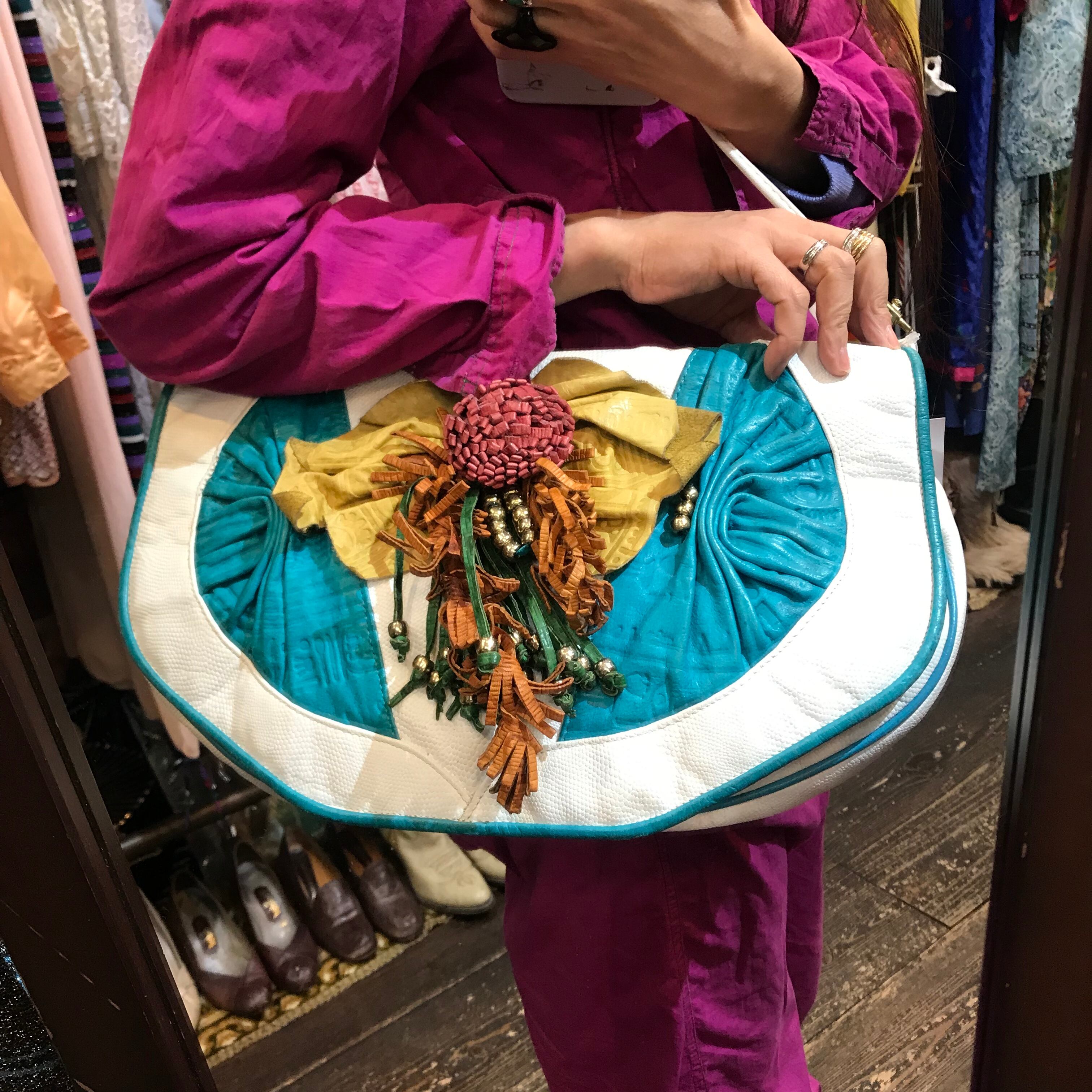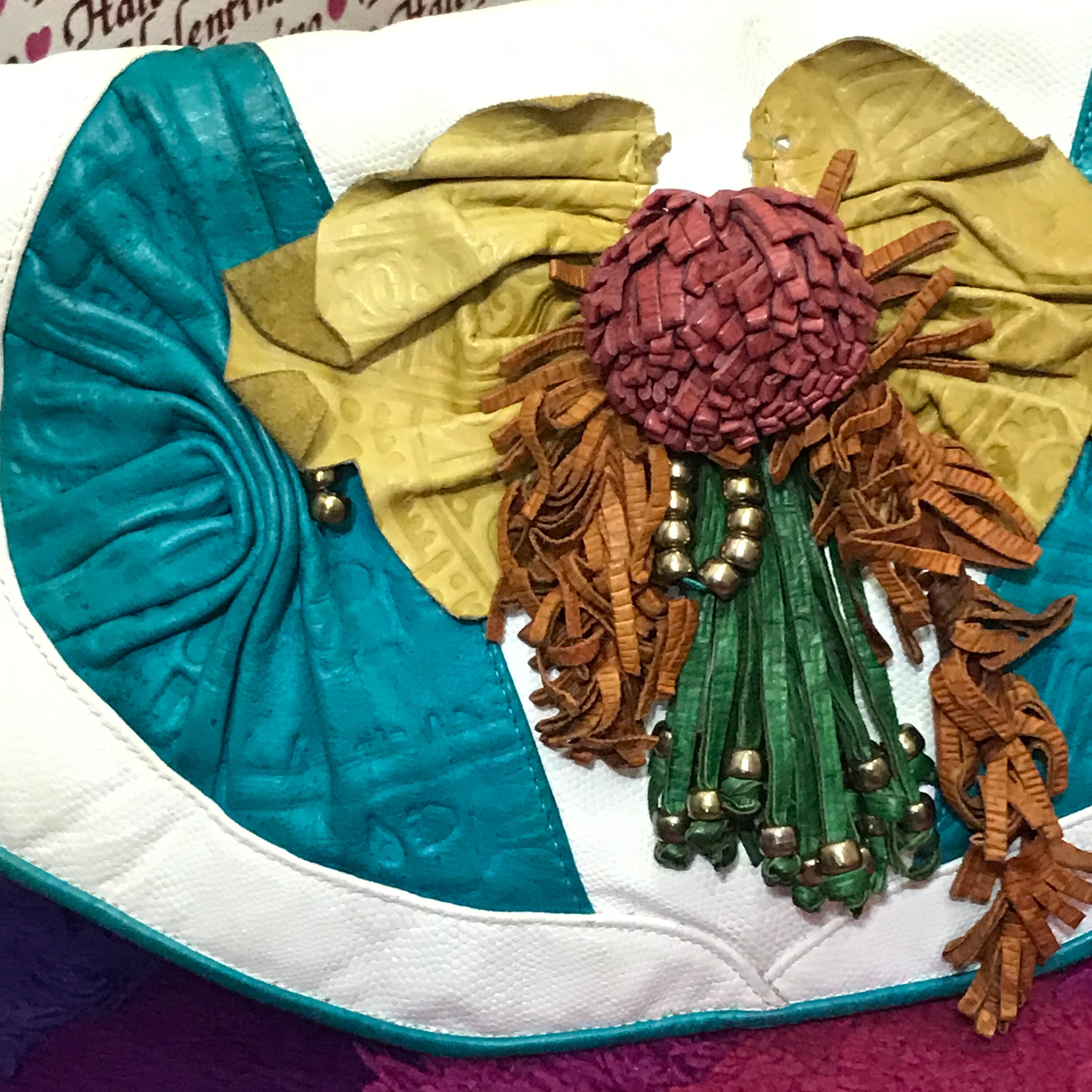 ホワイトボディにカラフルなレザーの装飾が付いた