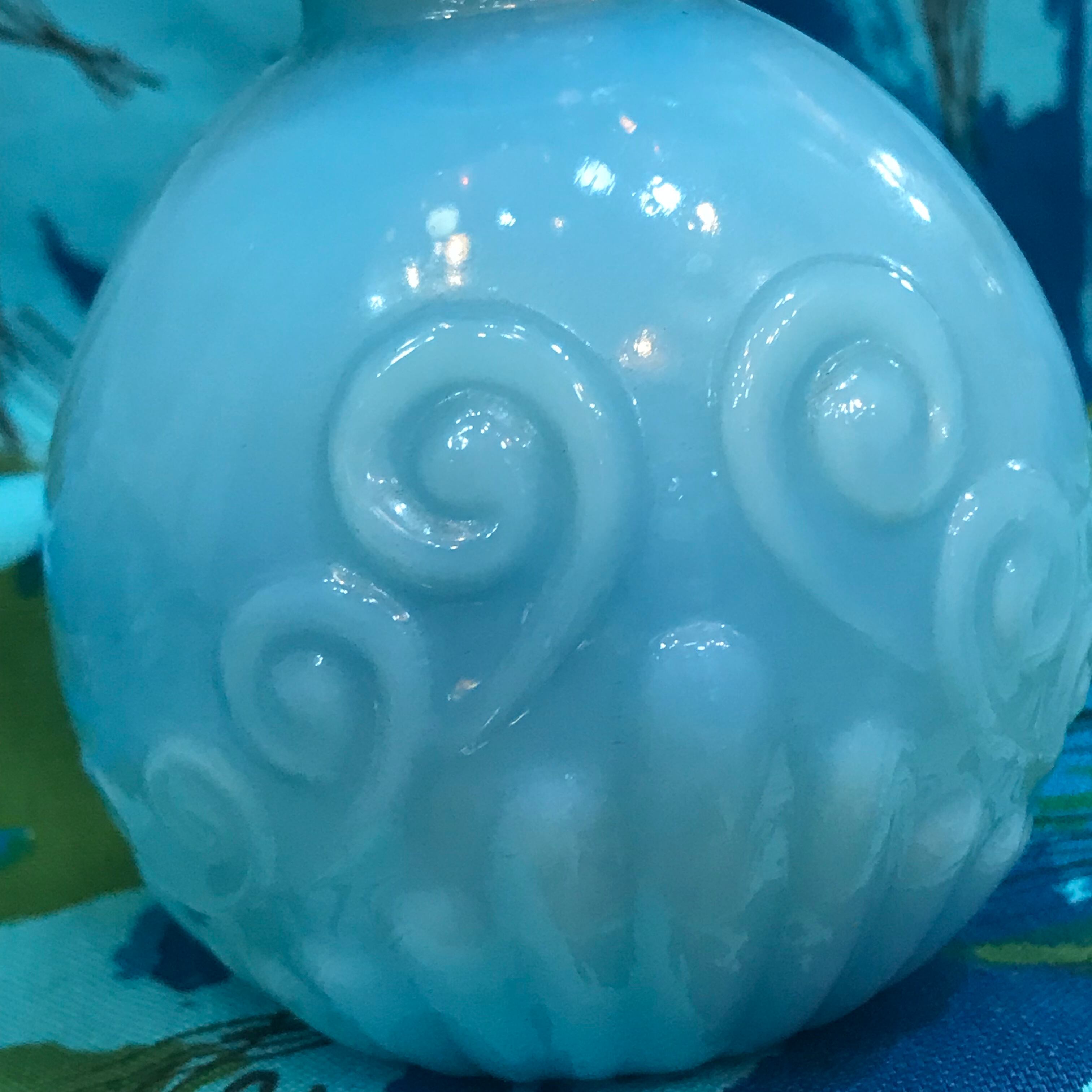 曲線が美しいアールヌーヴォー調のデザインのアクアブルーのミルクグラス