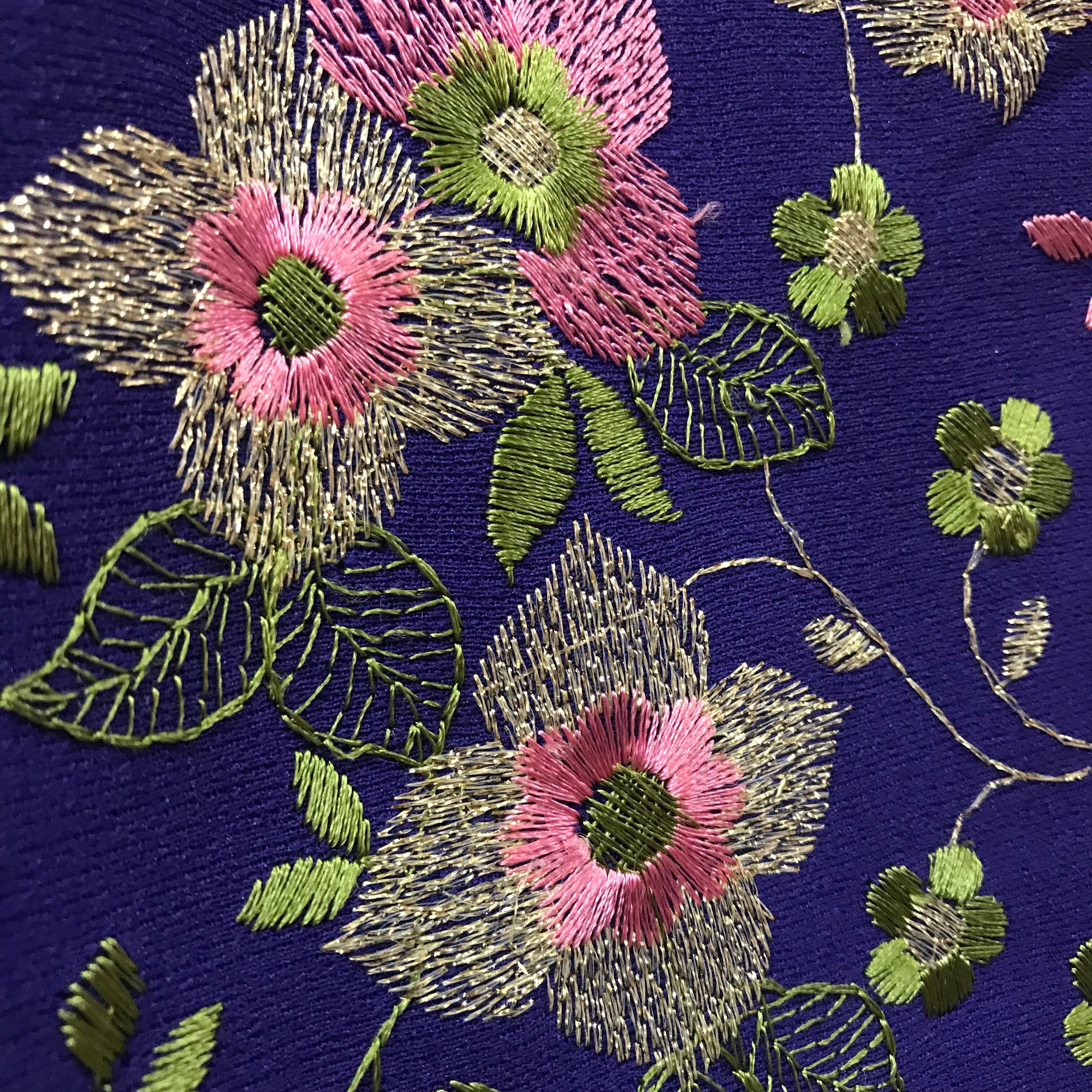 レイト60sヴィンテージ パープル フラワー刺繍マキシスカート