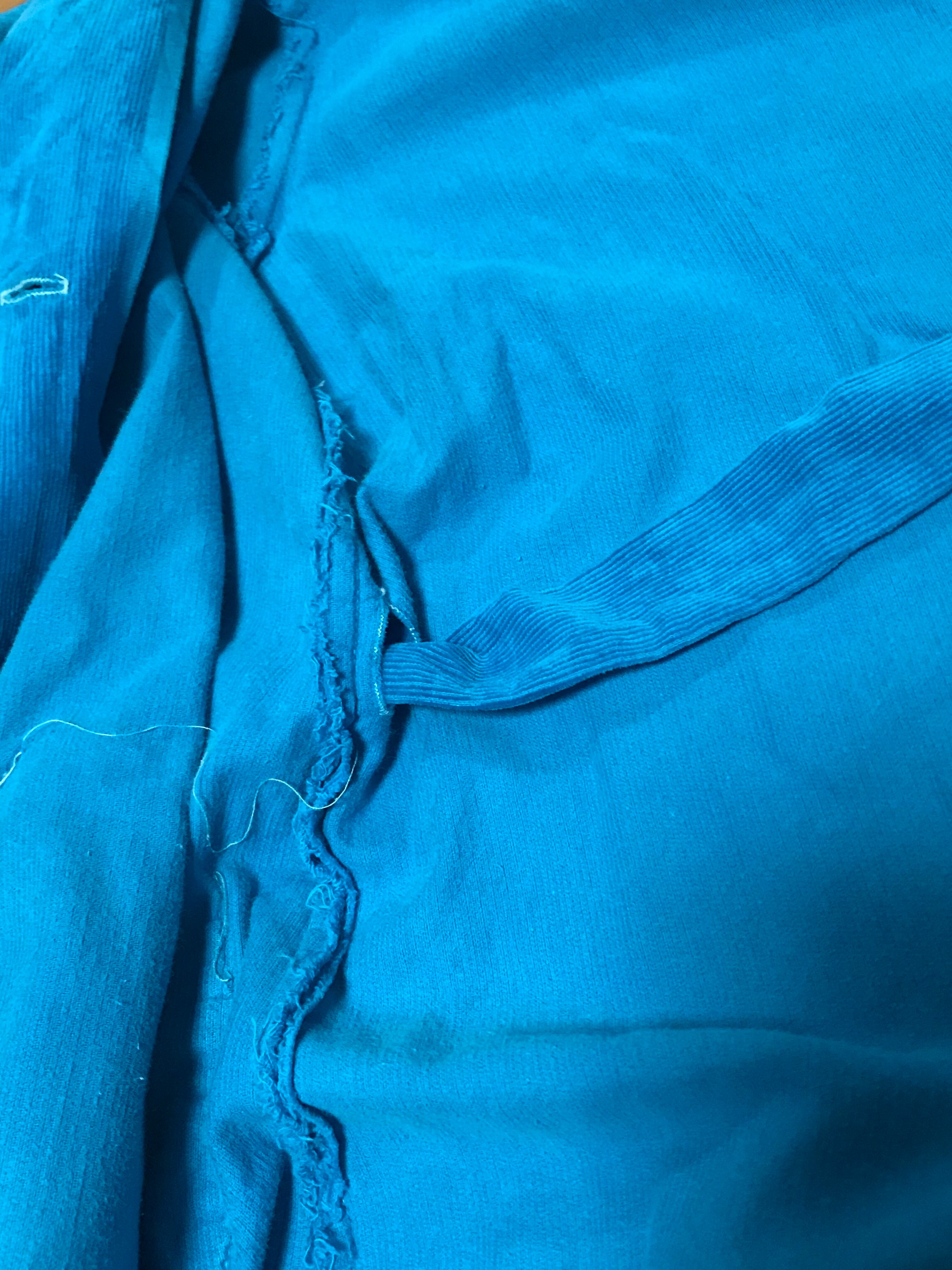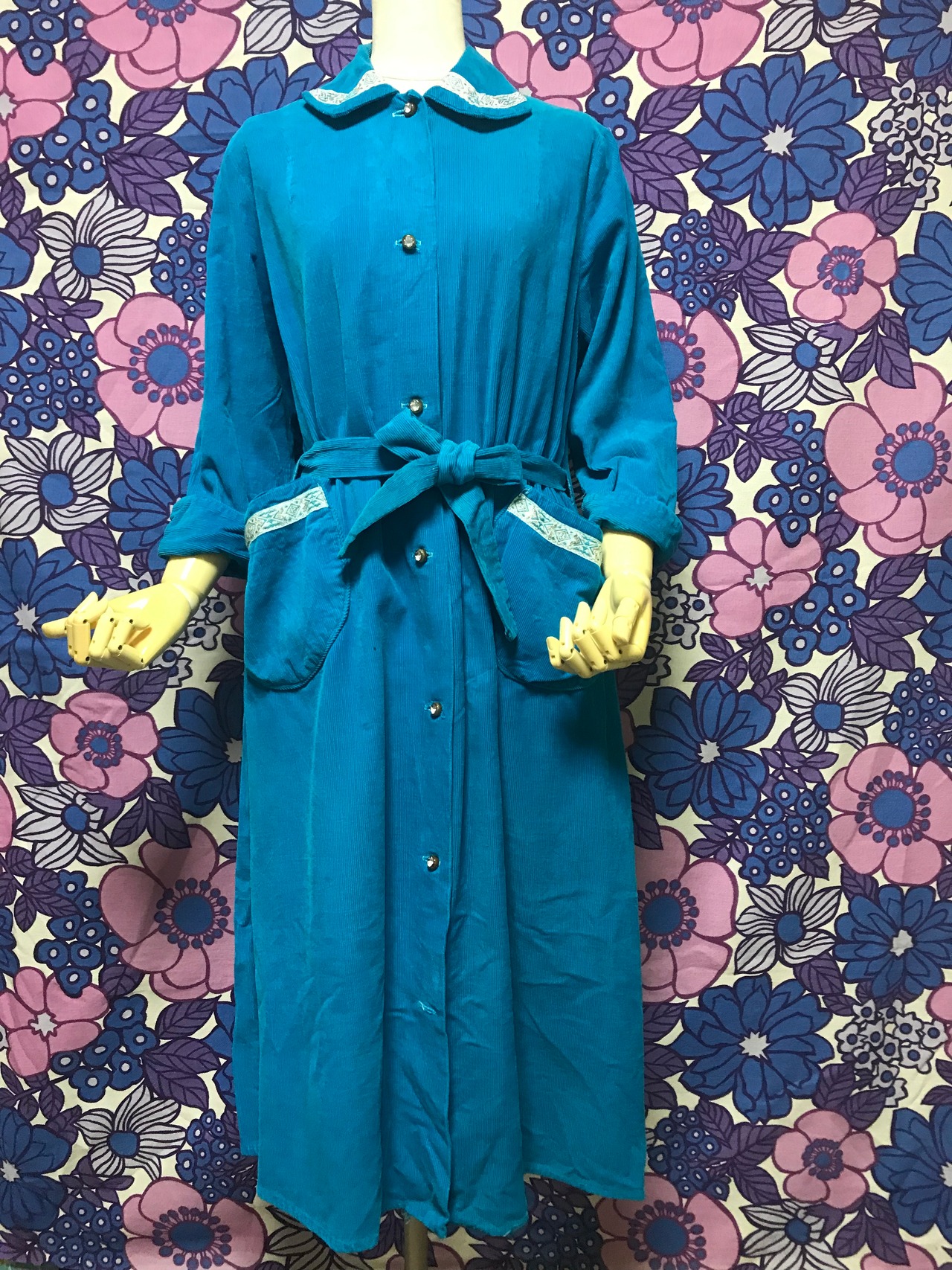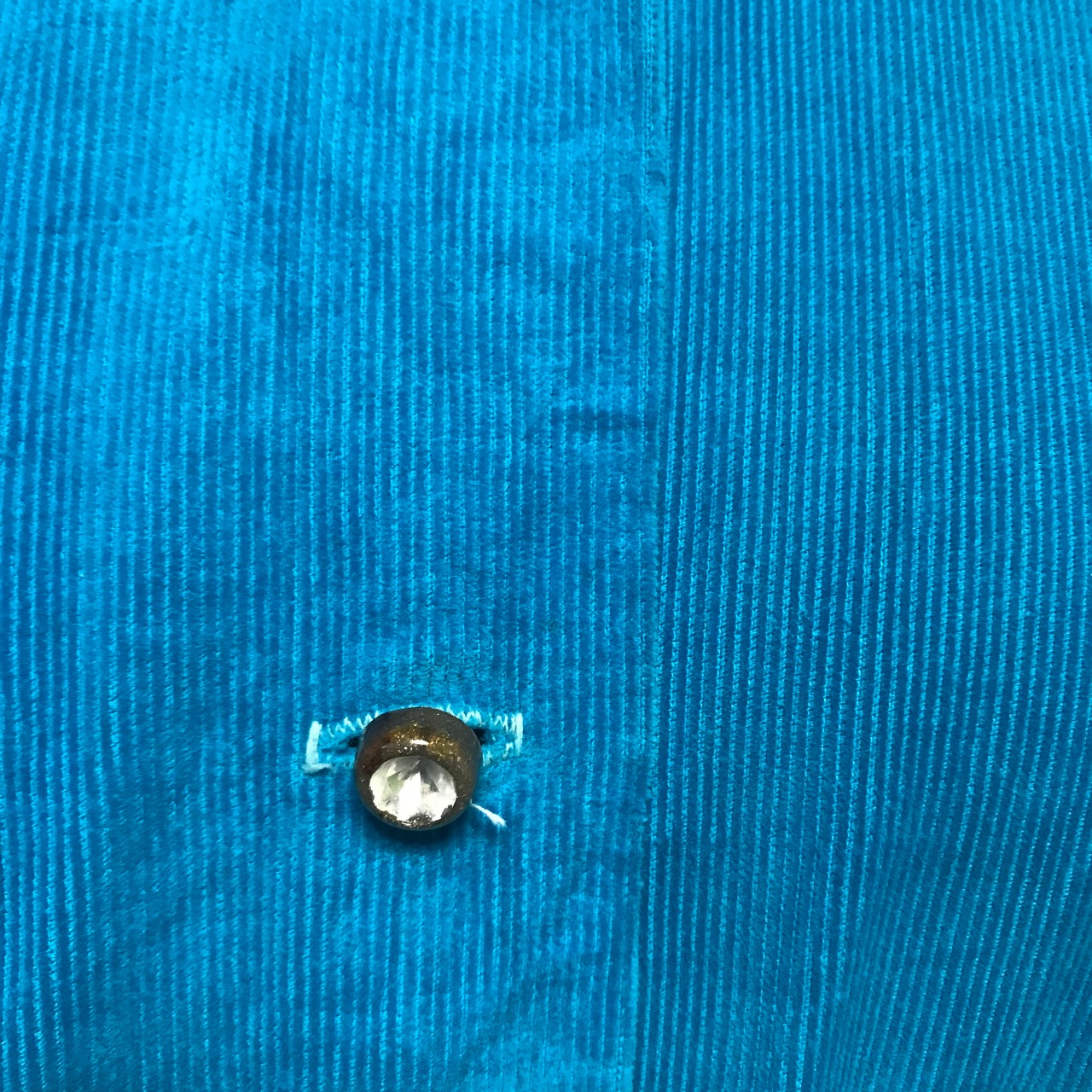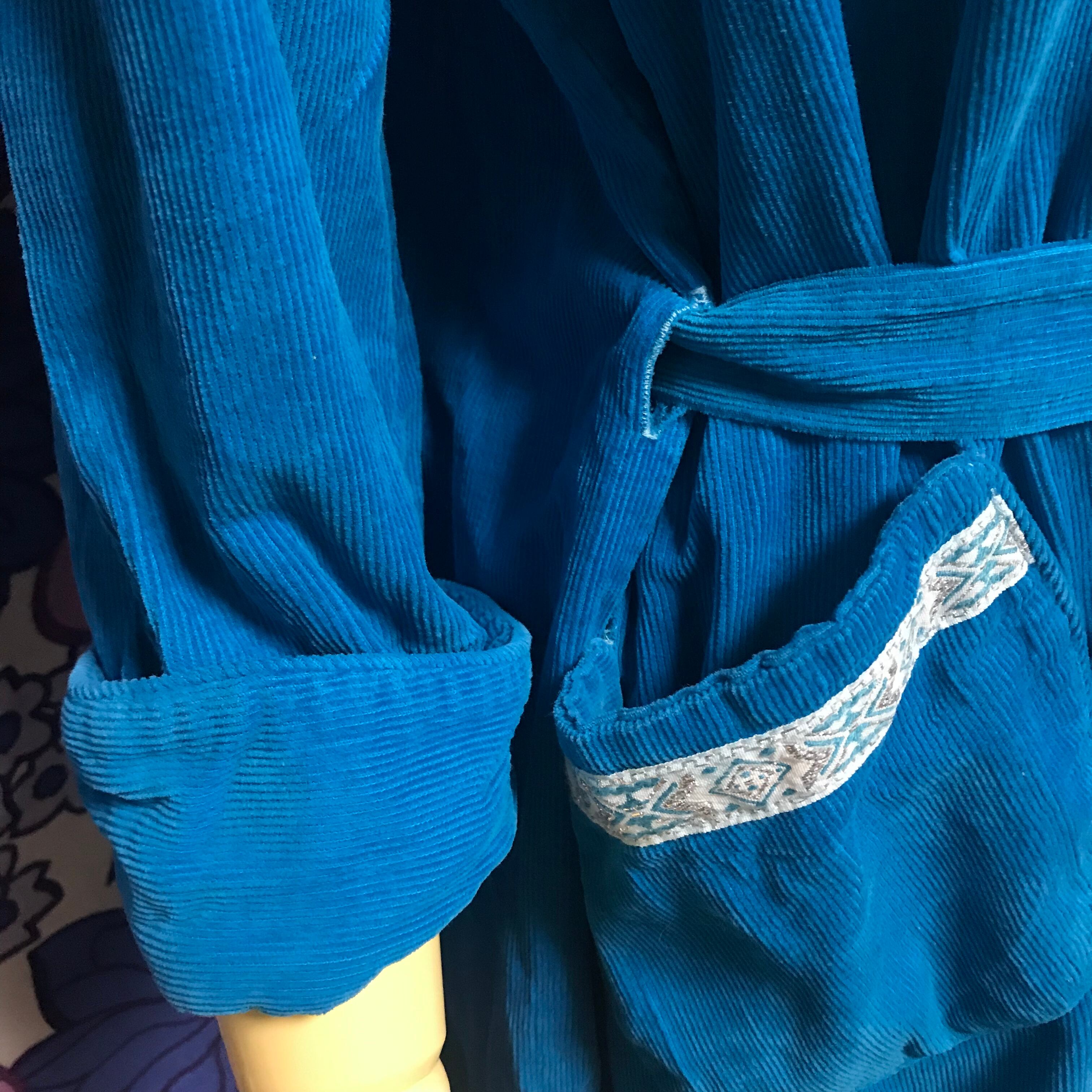 鮮やかなターコイズのコーデュロイ ラウンジコート