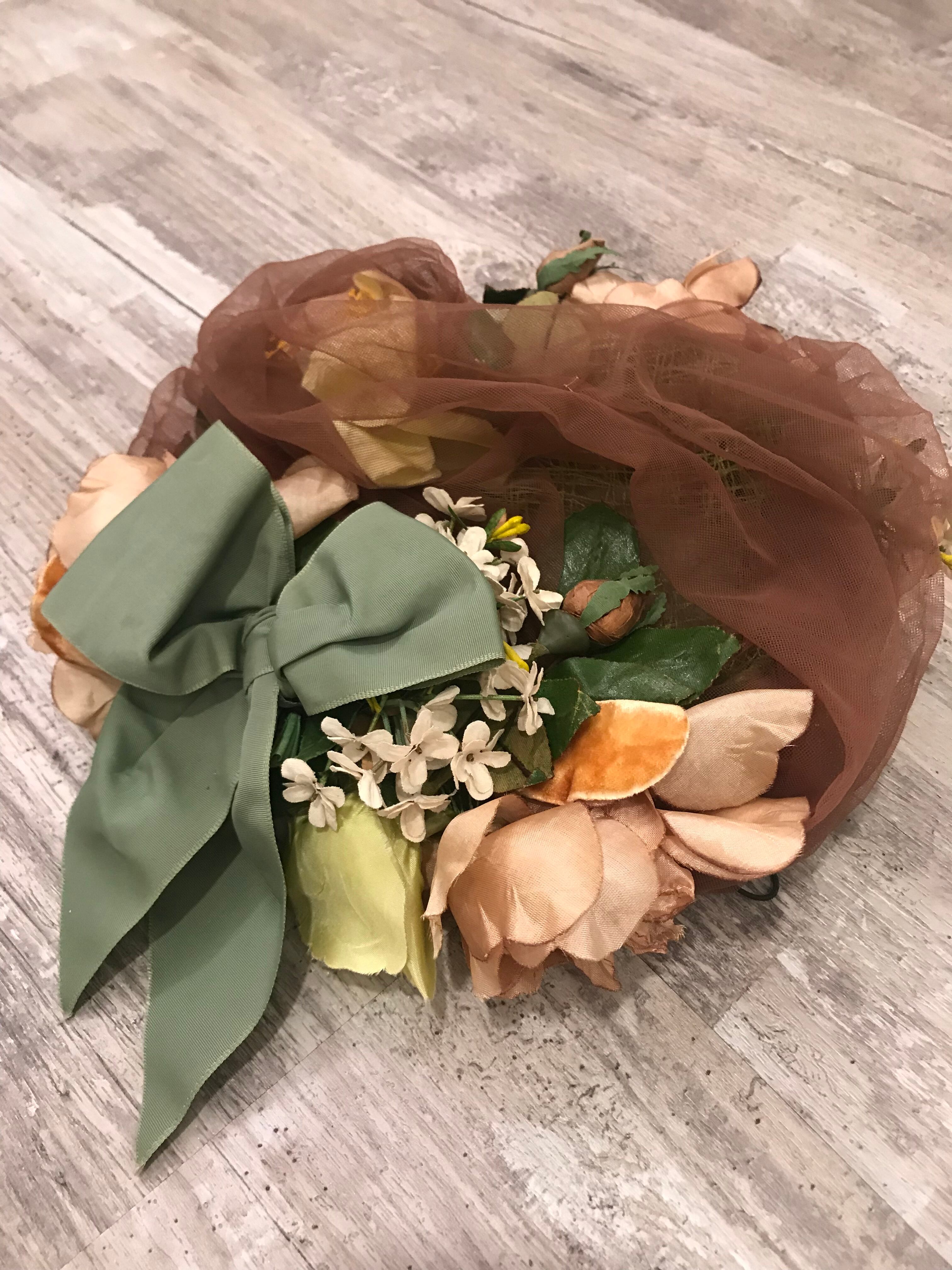 40/50s フラワー&グリーンリボン ヘッドピース