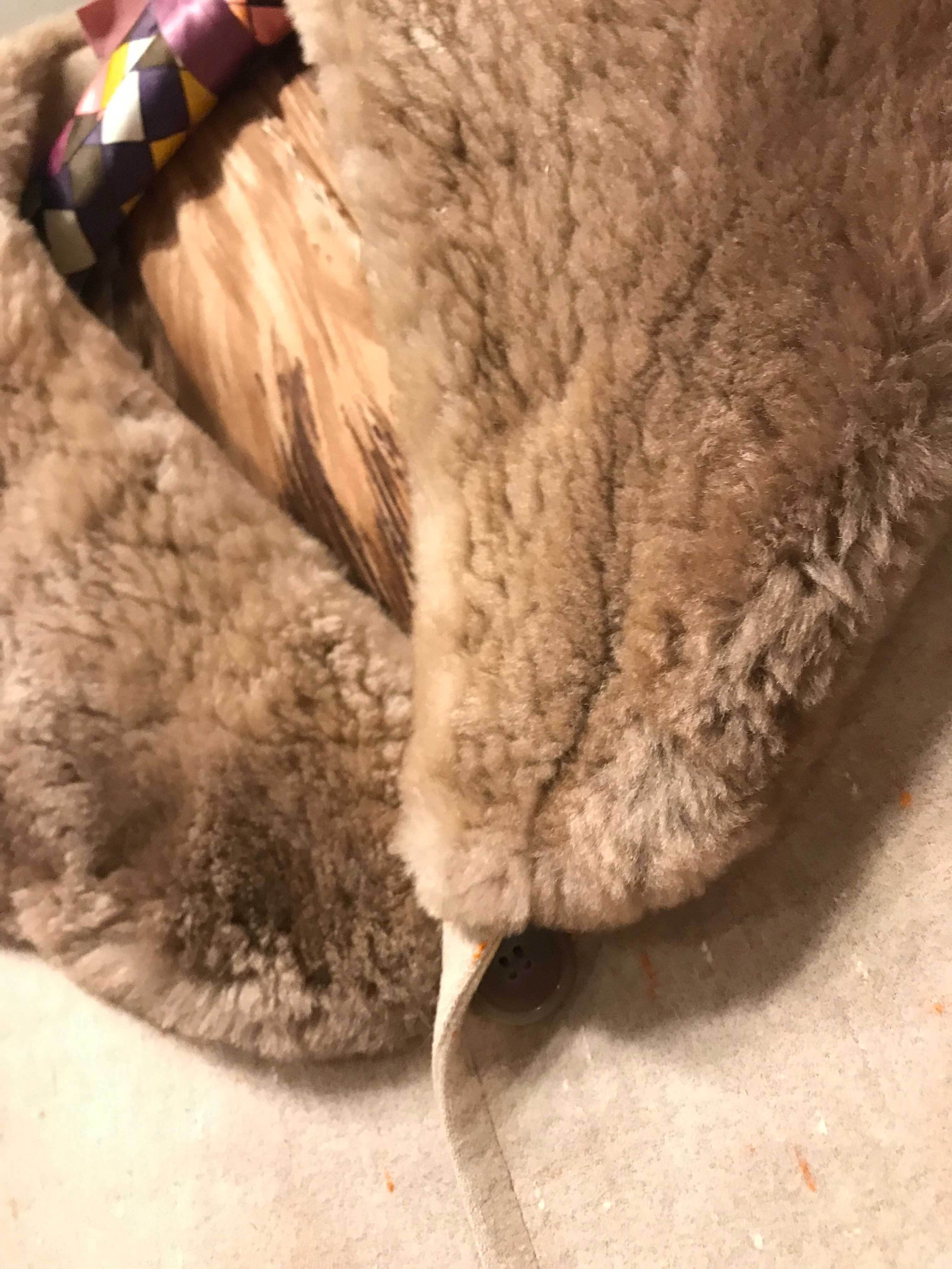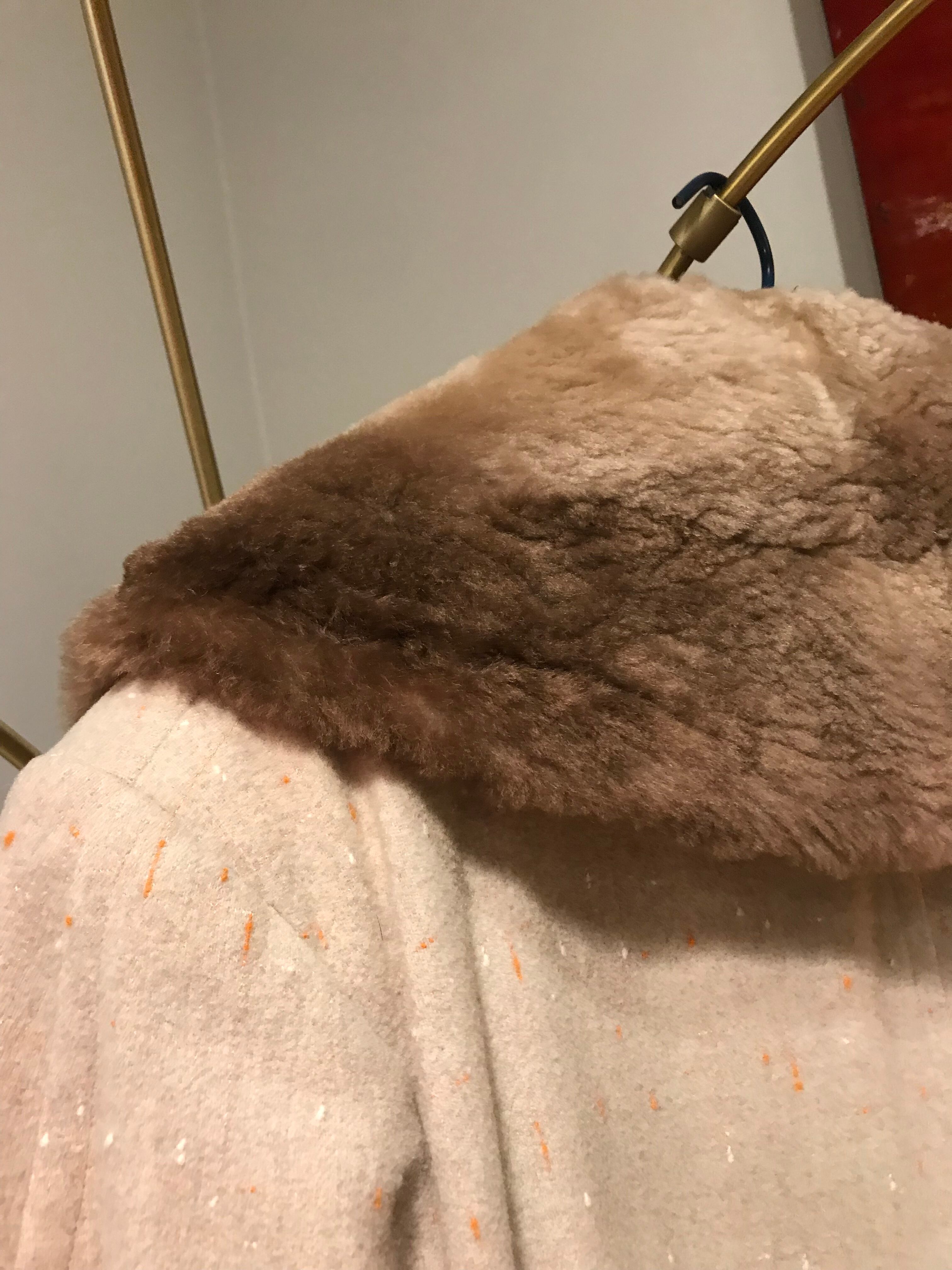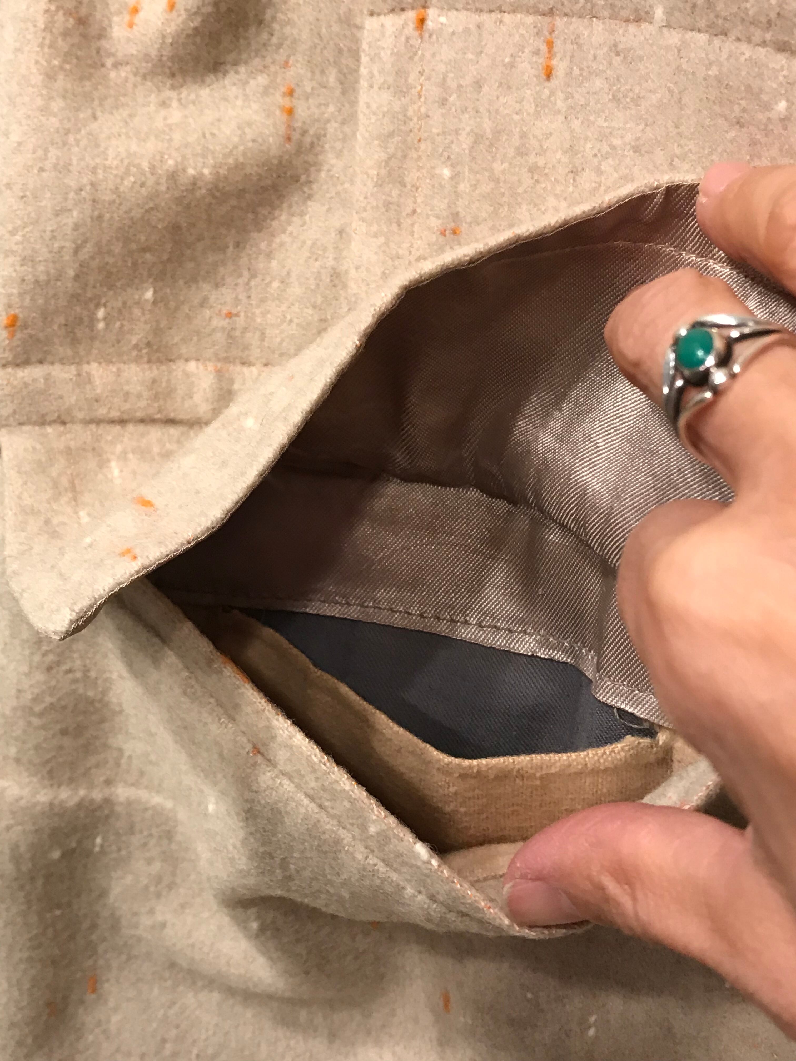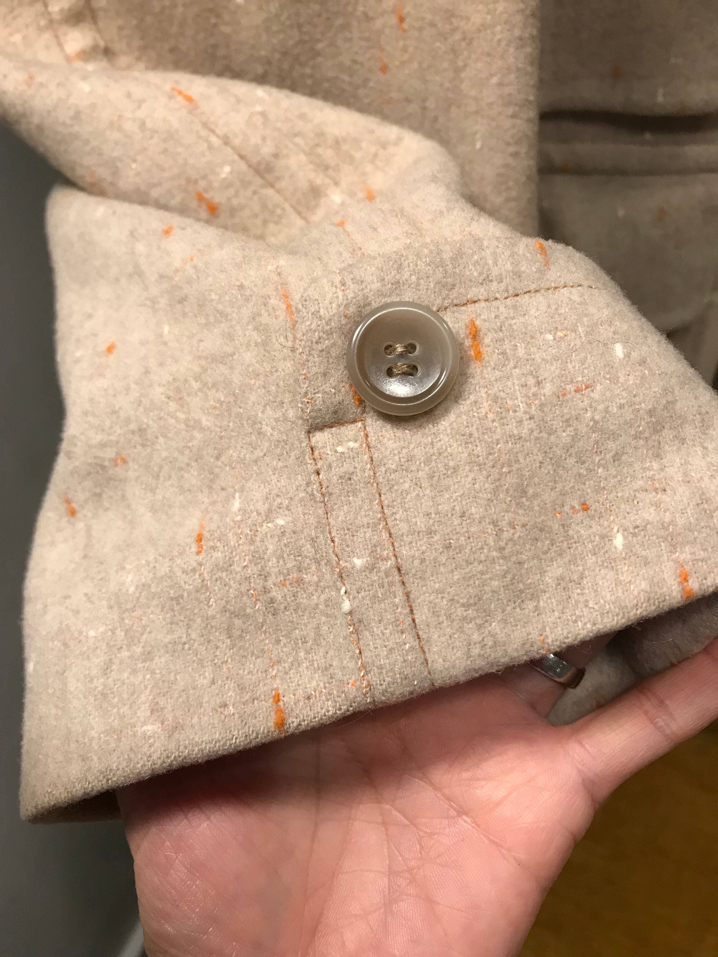オレンジとホワイトのネップが所々格子状に入るベージュのウールと