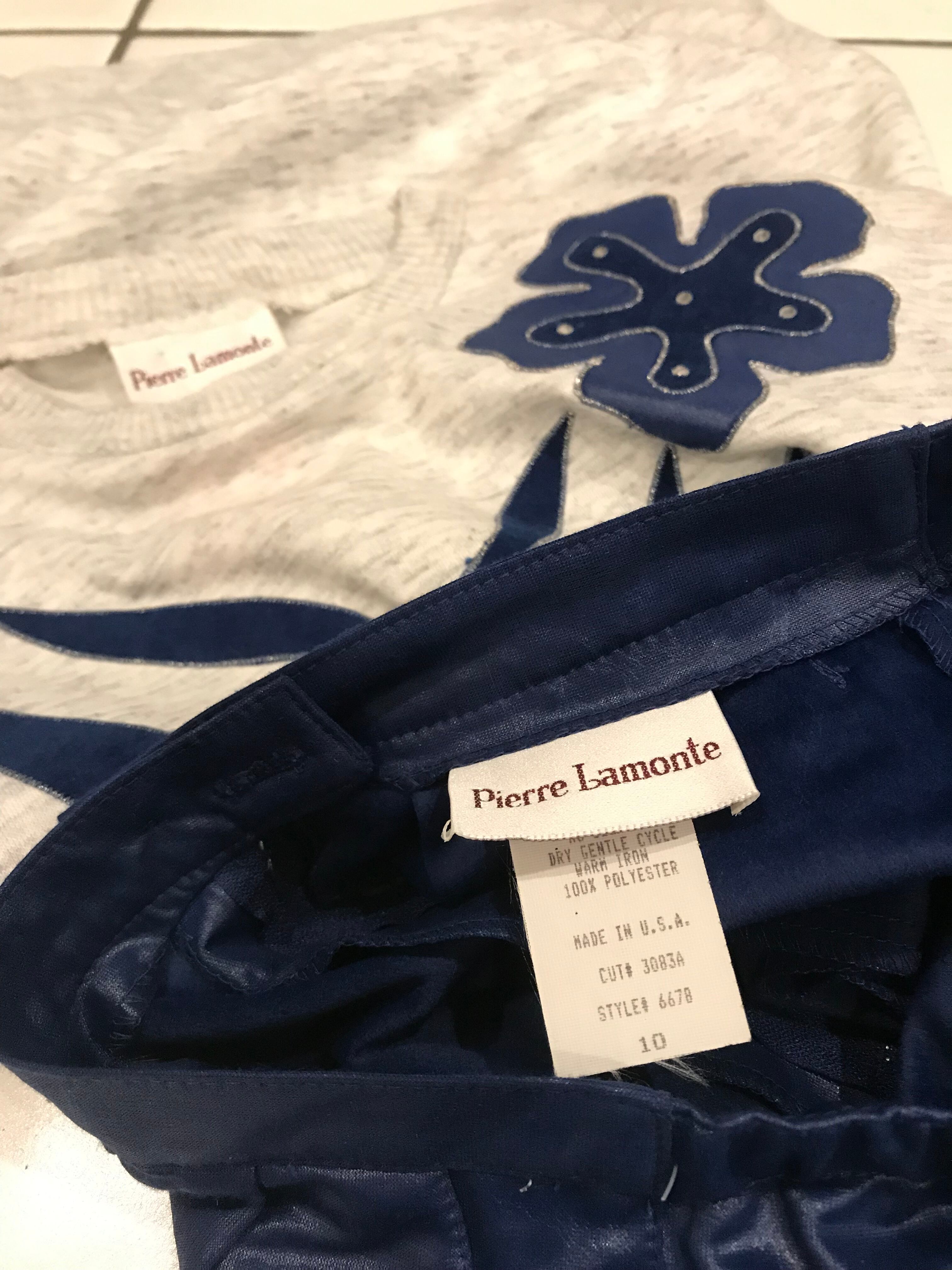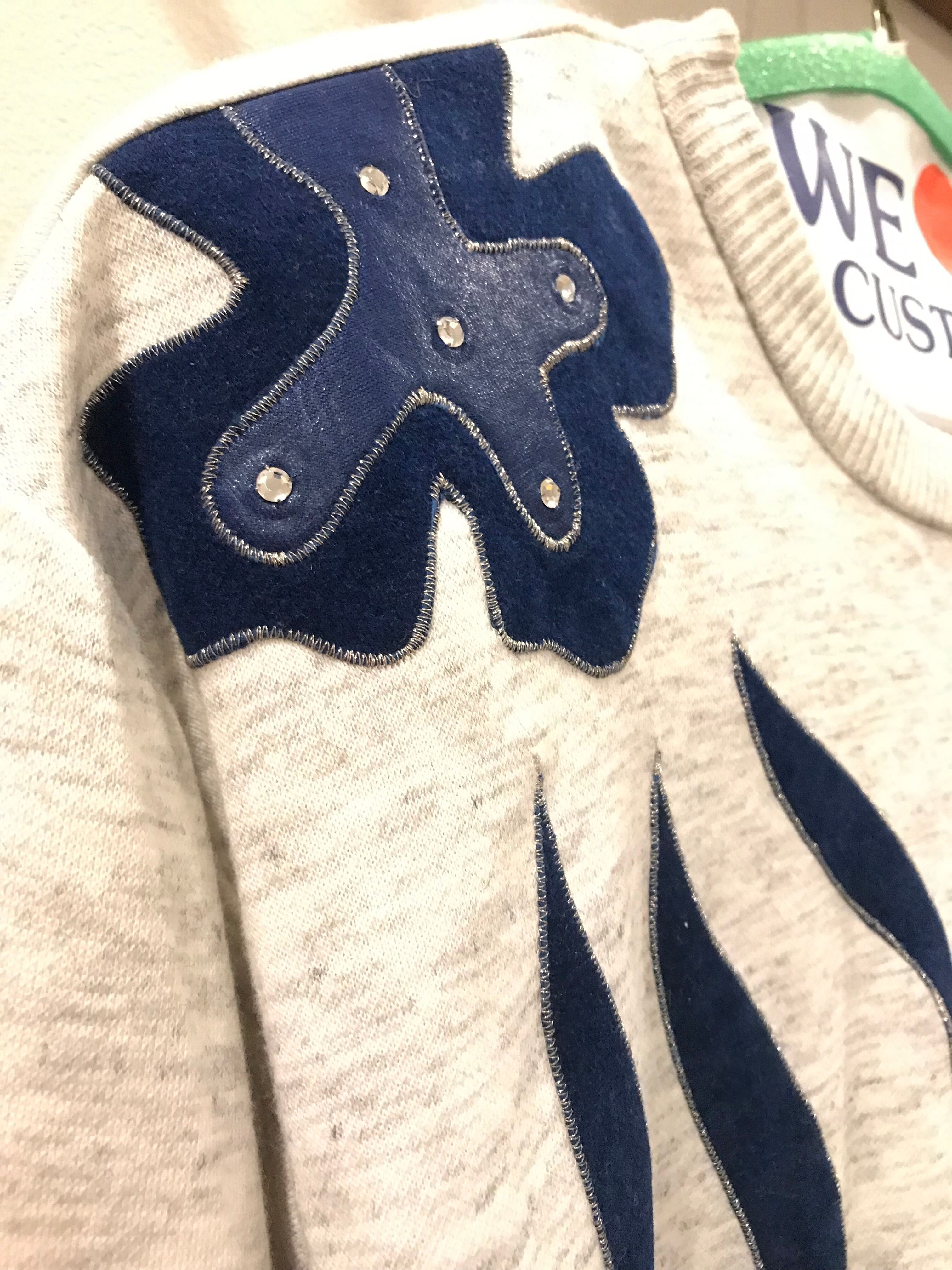 花モチーフのパッチワークが前身頃肩辺りにデザインされています