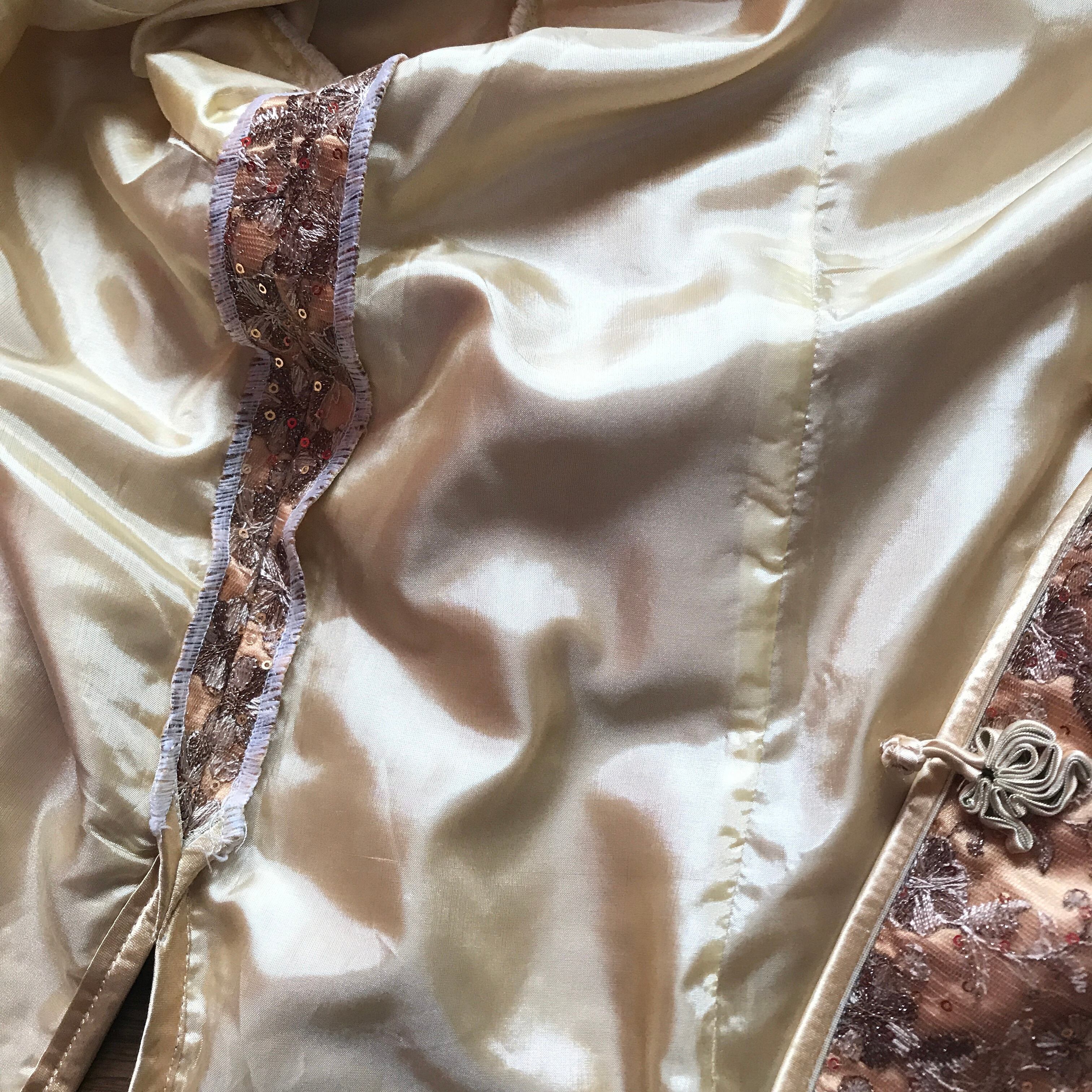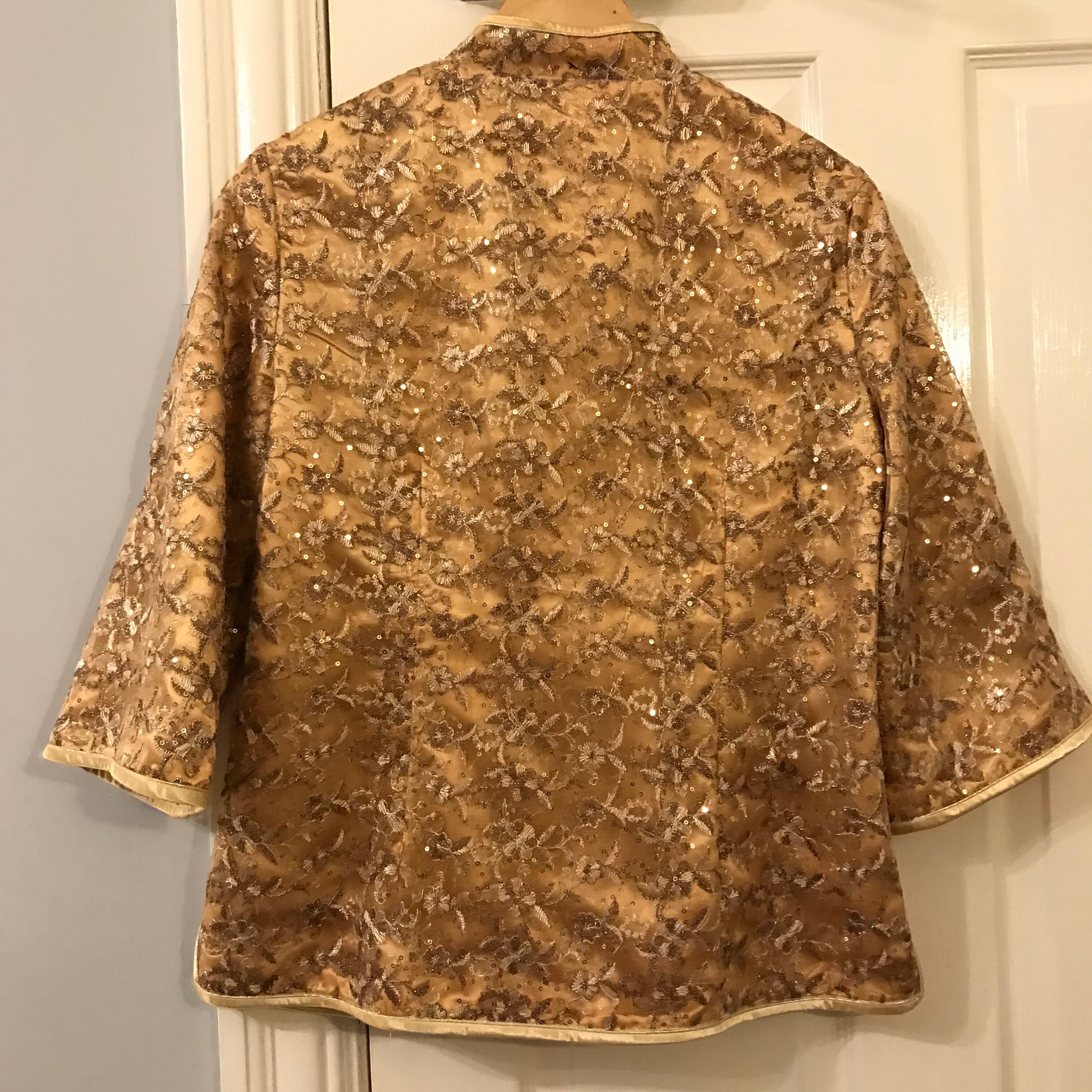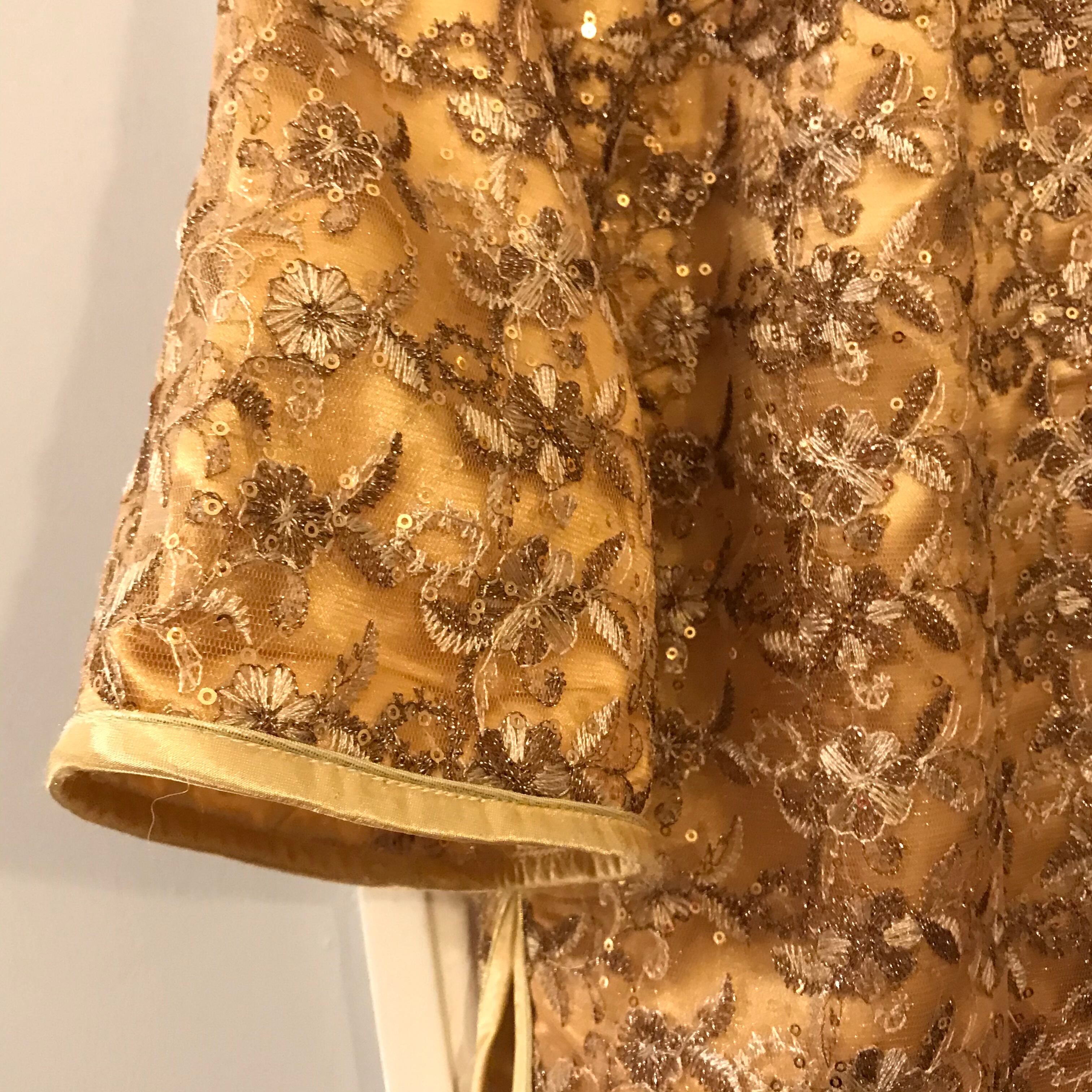 ゴールドの花柄のレースにスパンコールを散りばめた