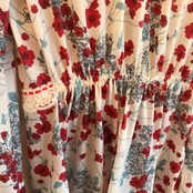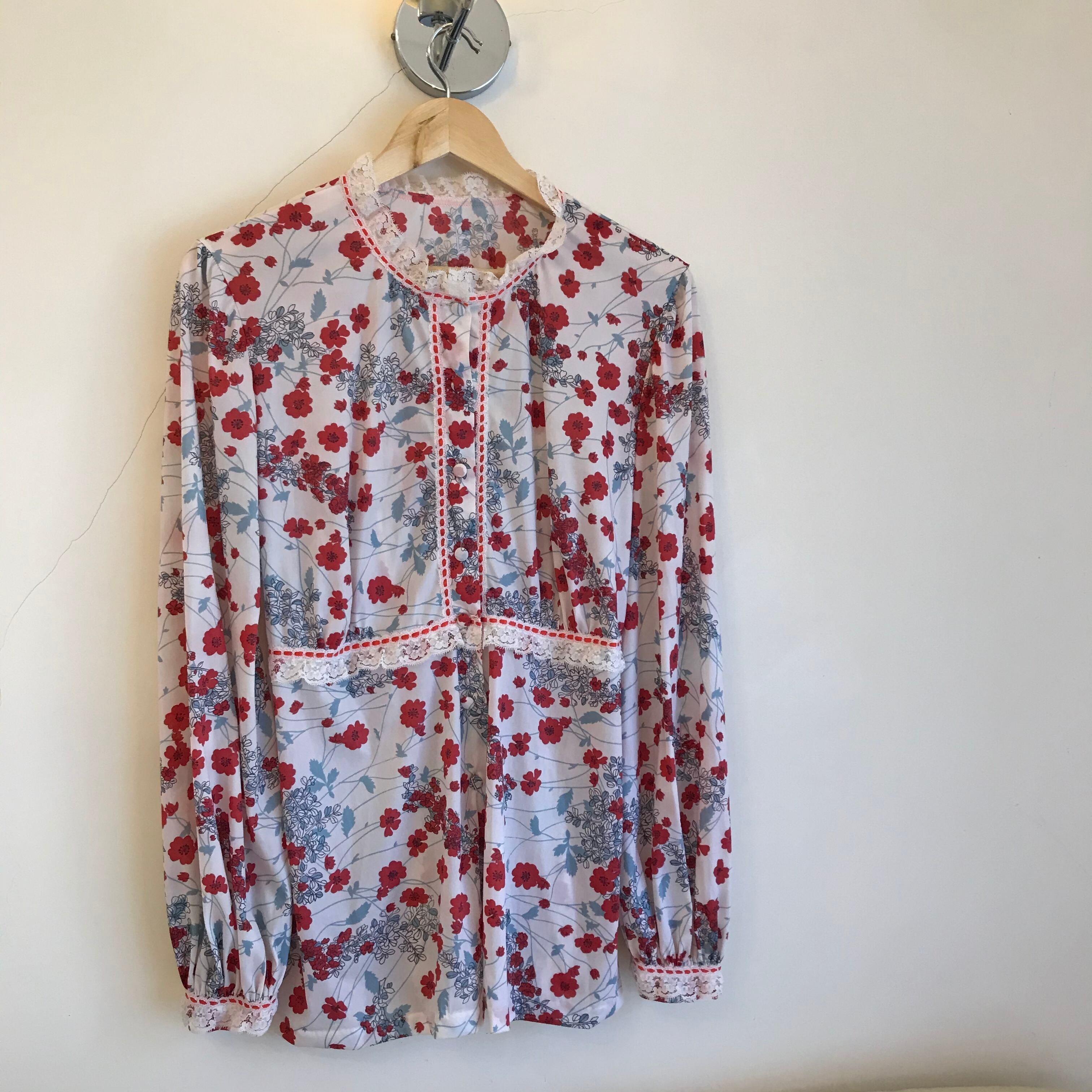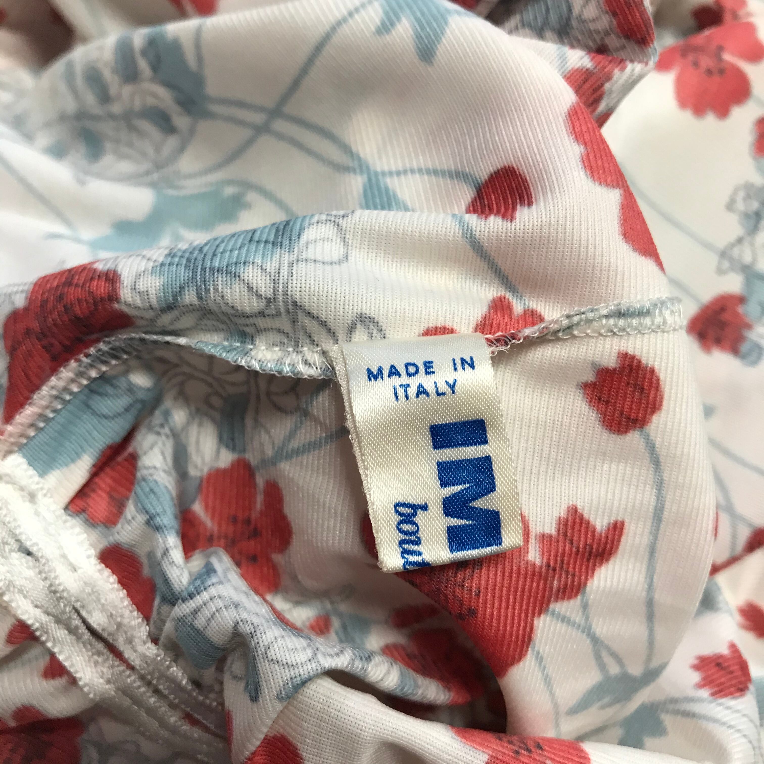 ホワイトに赤い花ブルーグレーの葉っぱのナイロントップス
