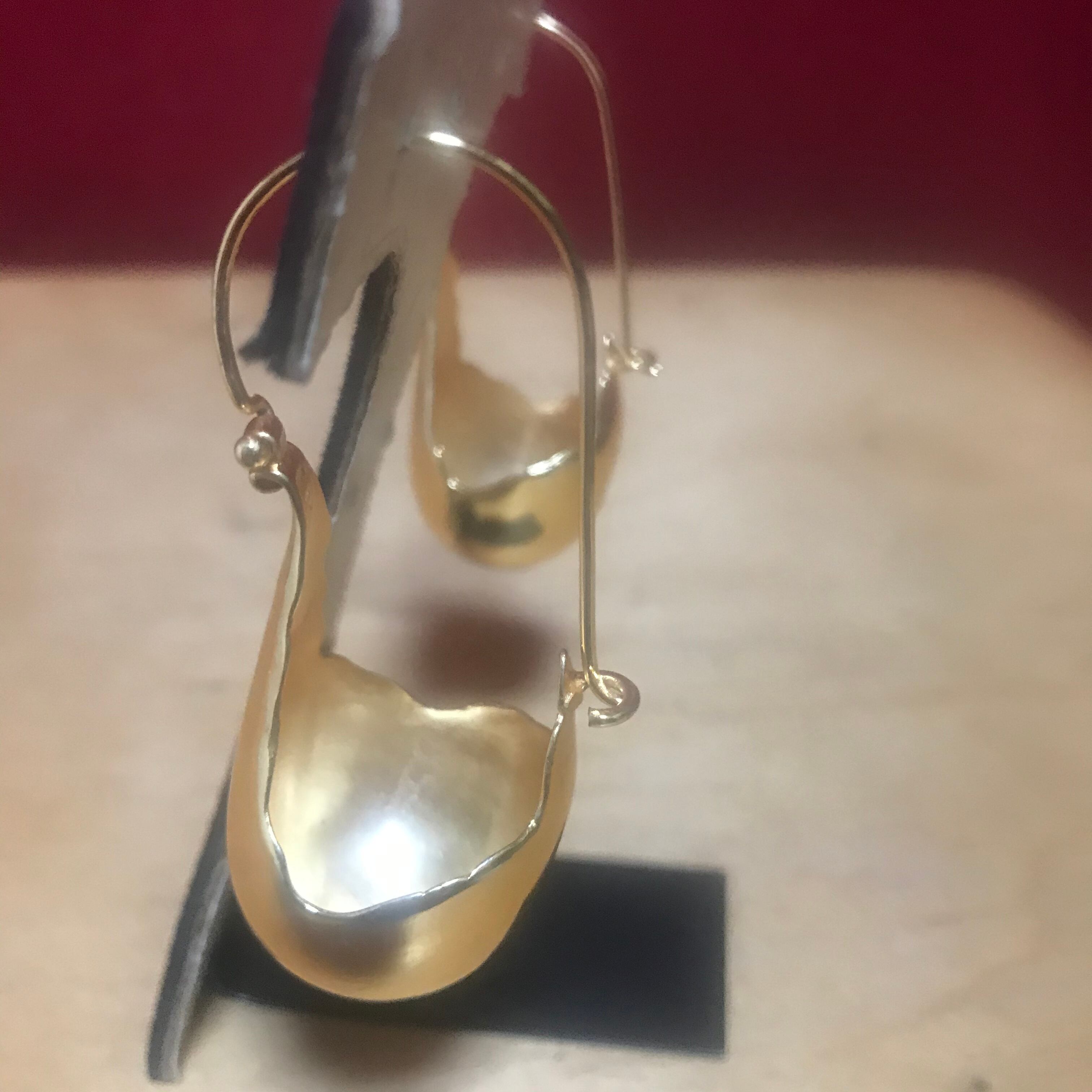 艶々のゴールドトーンの大きめのスゥィングピアス