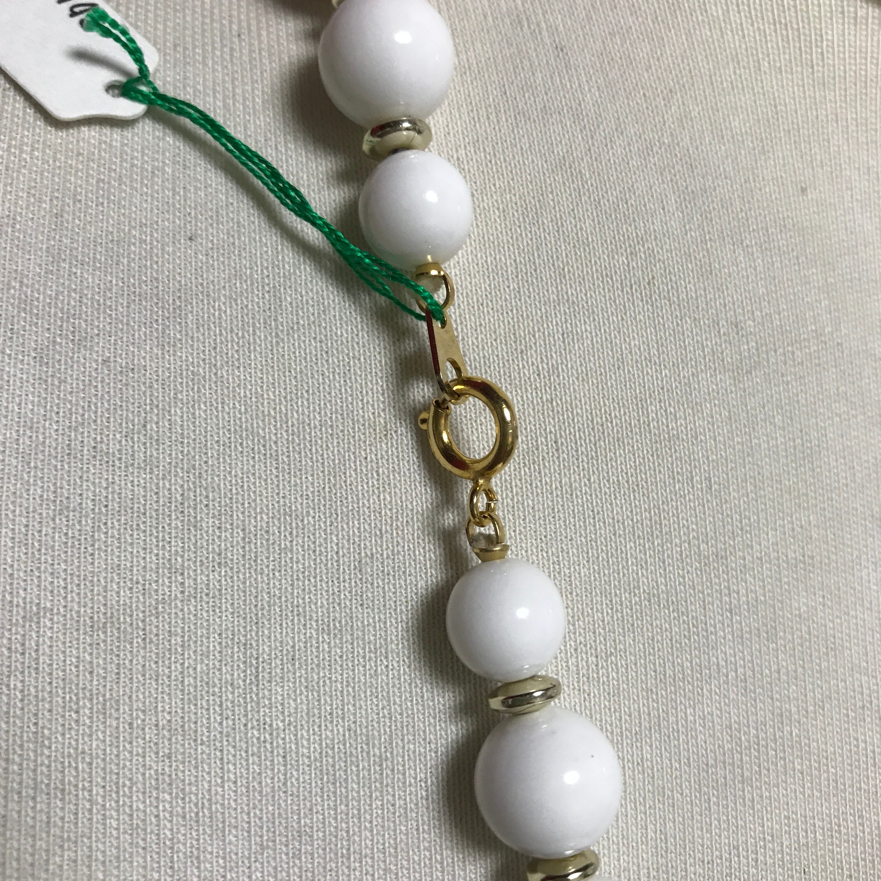 まぁるいコロンとしたビーズひとつひとつの間にはゴールドのスペーサービーズが入り、