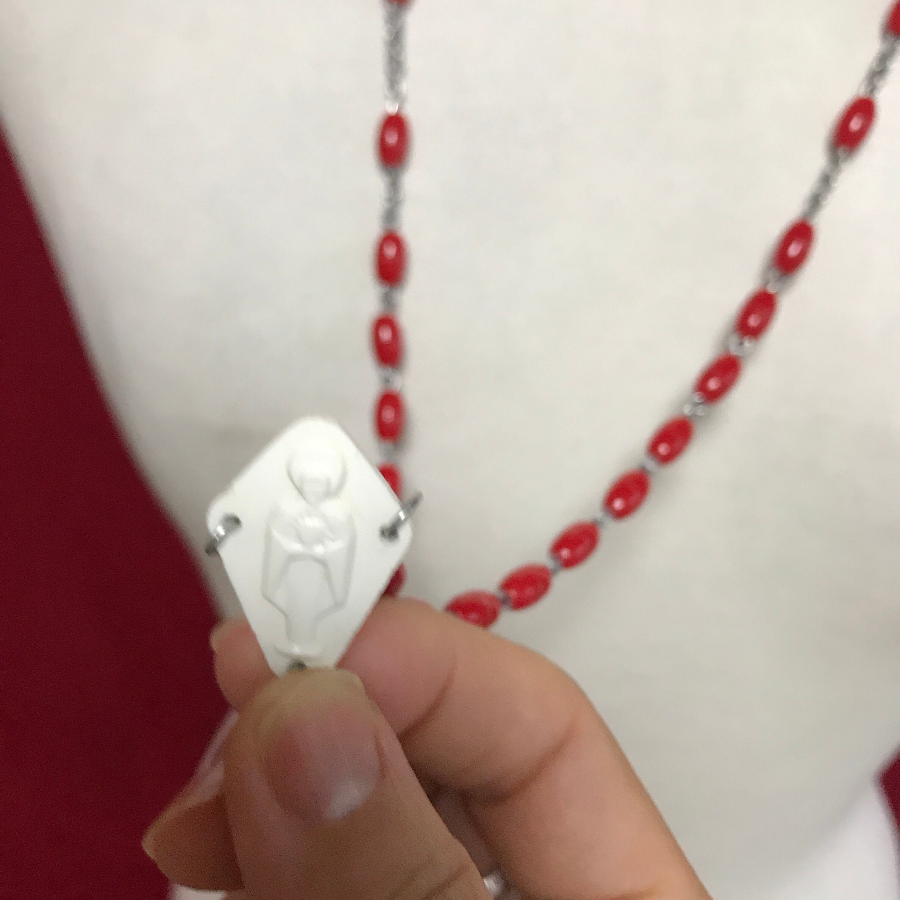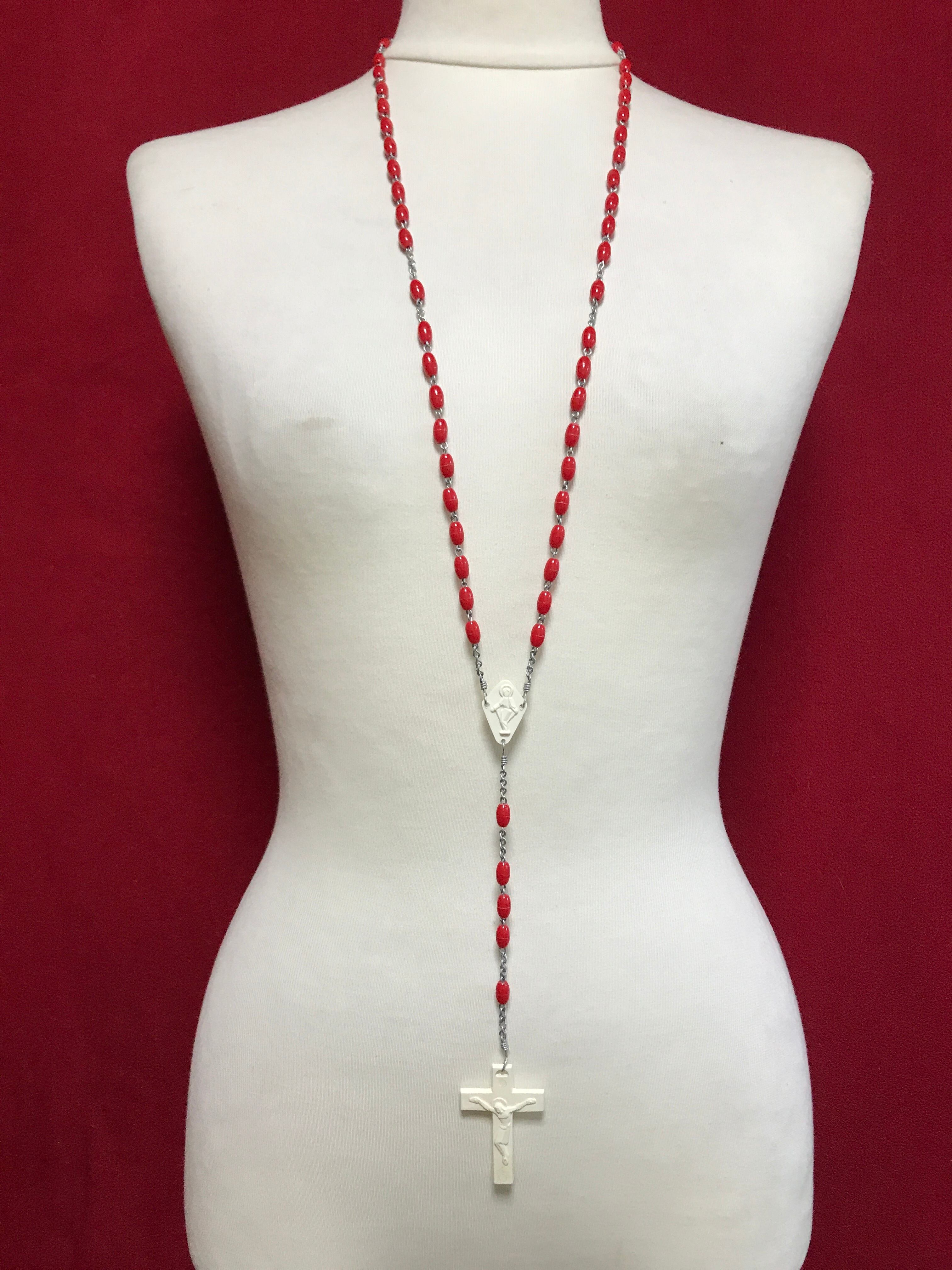レッドプラビースをシルバーチェーンで繋げたロザリオ