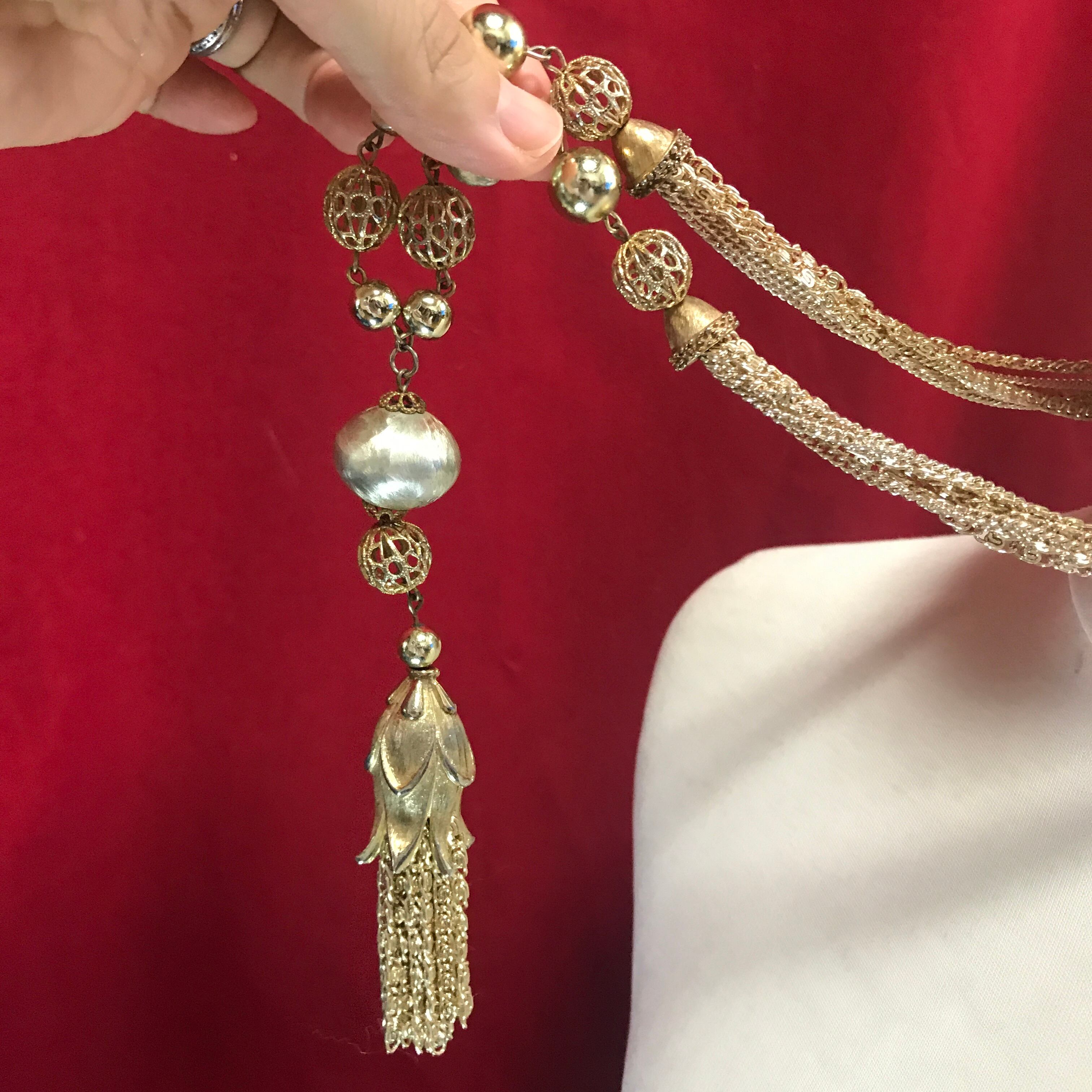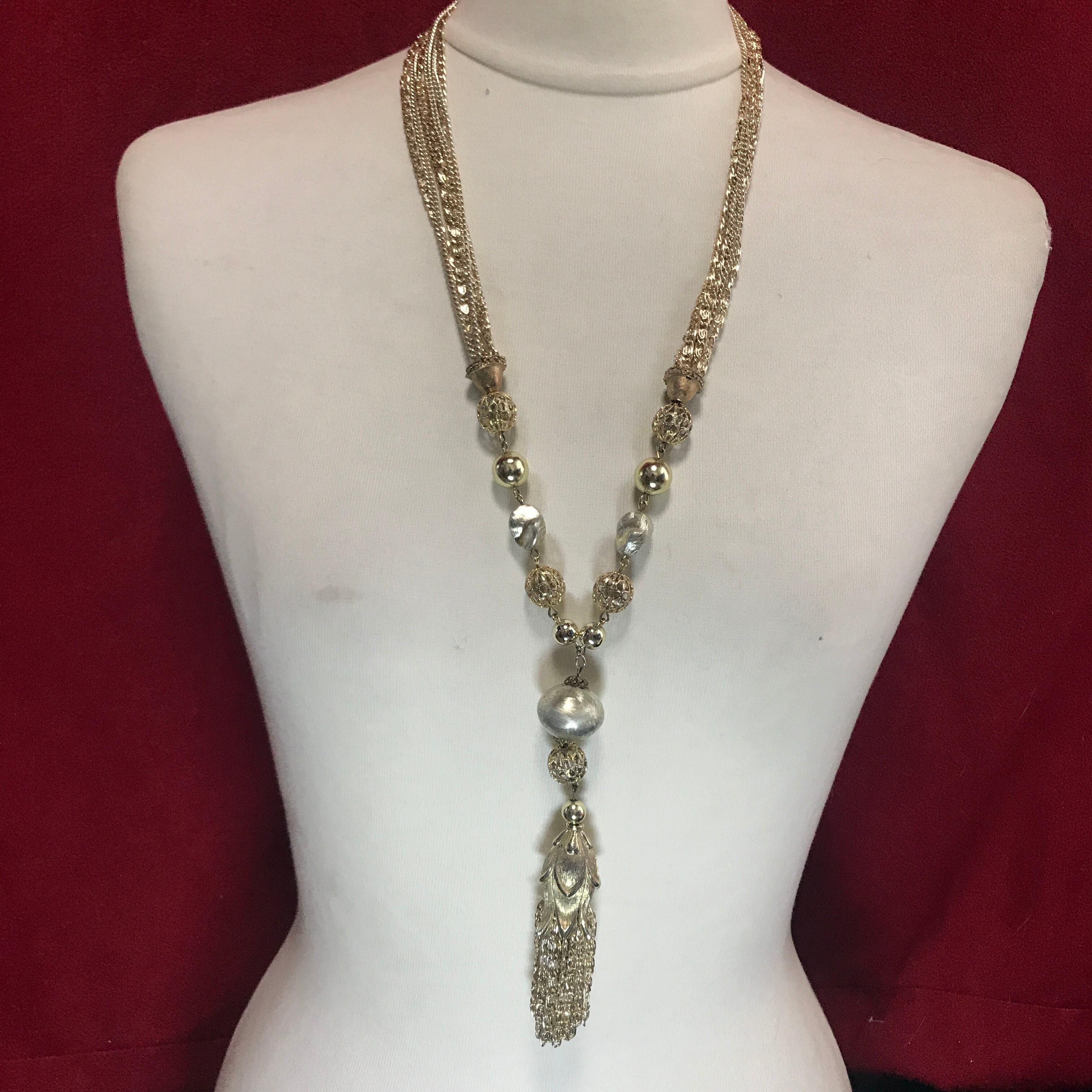 60/70sヴィンテージ ゴールドチェーンタッセルネックレス