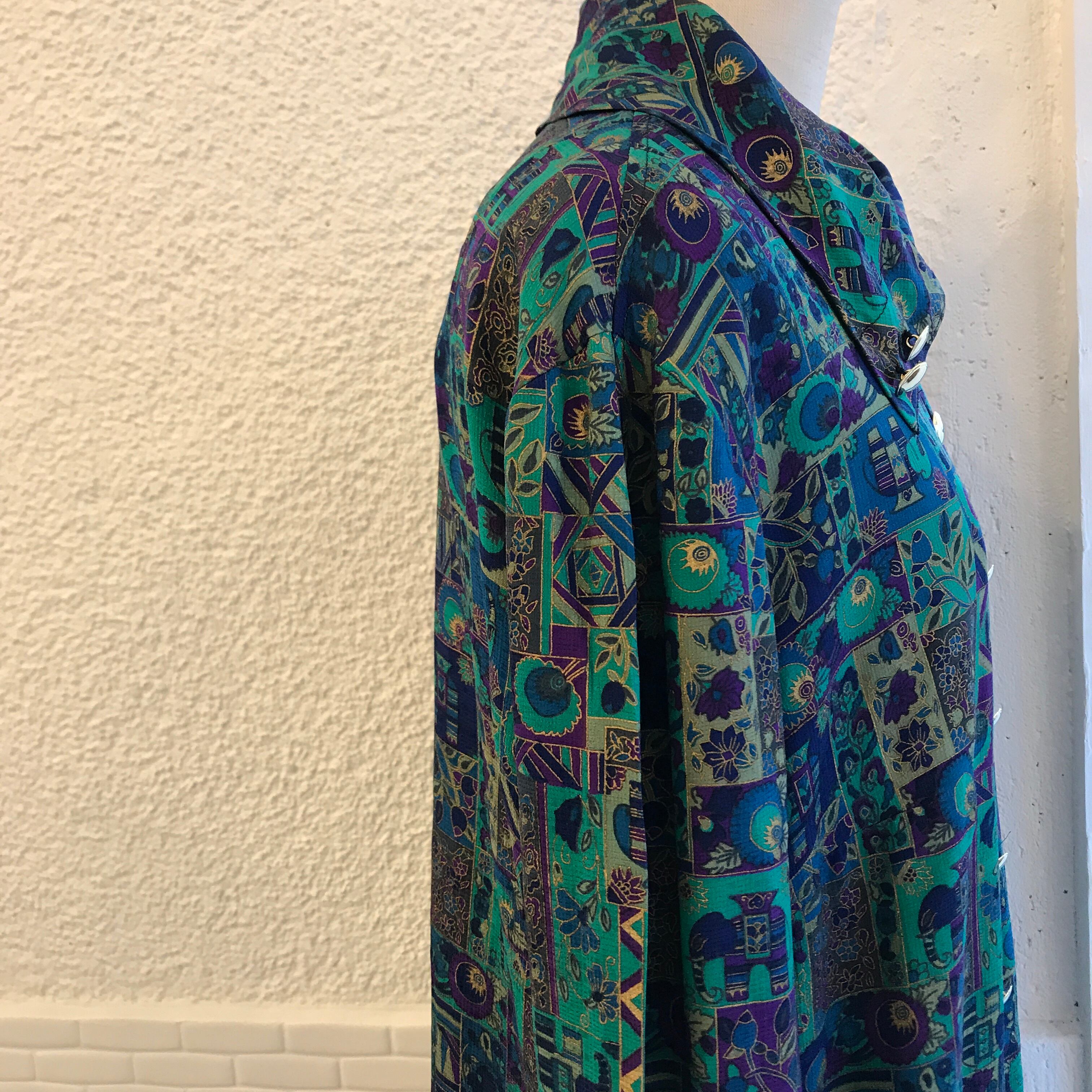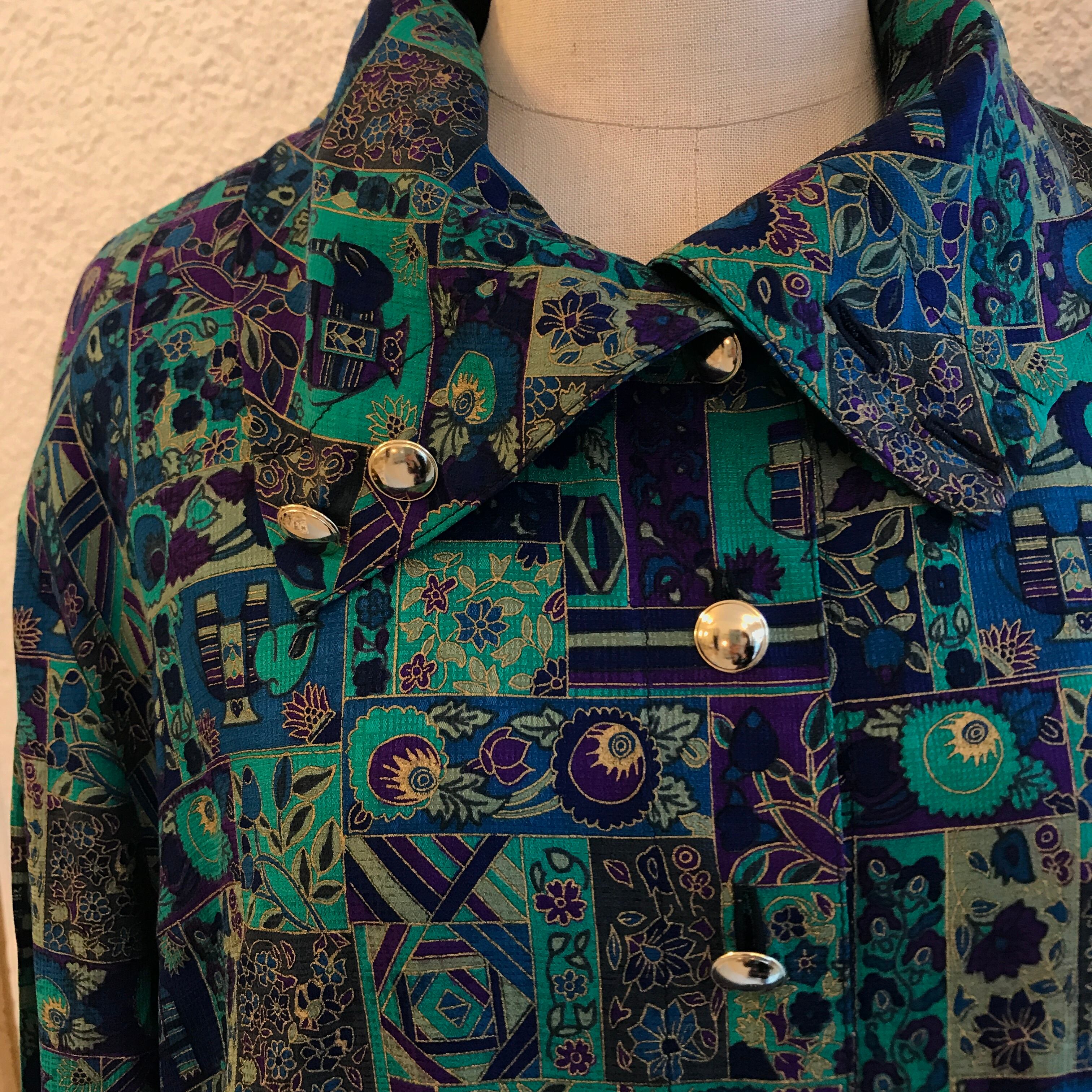 東洋的な花や象の柄がタイルのように組み合わされたパターン柄