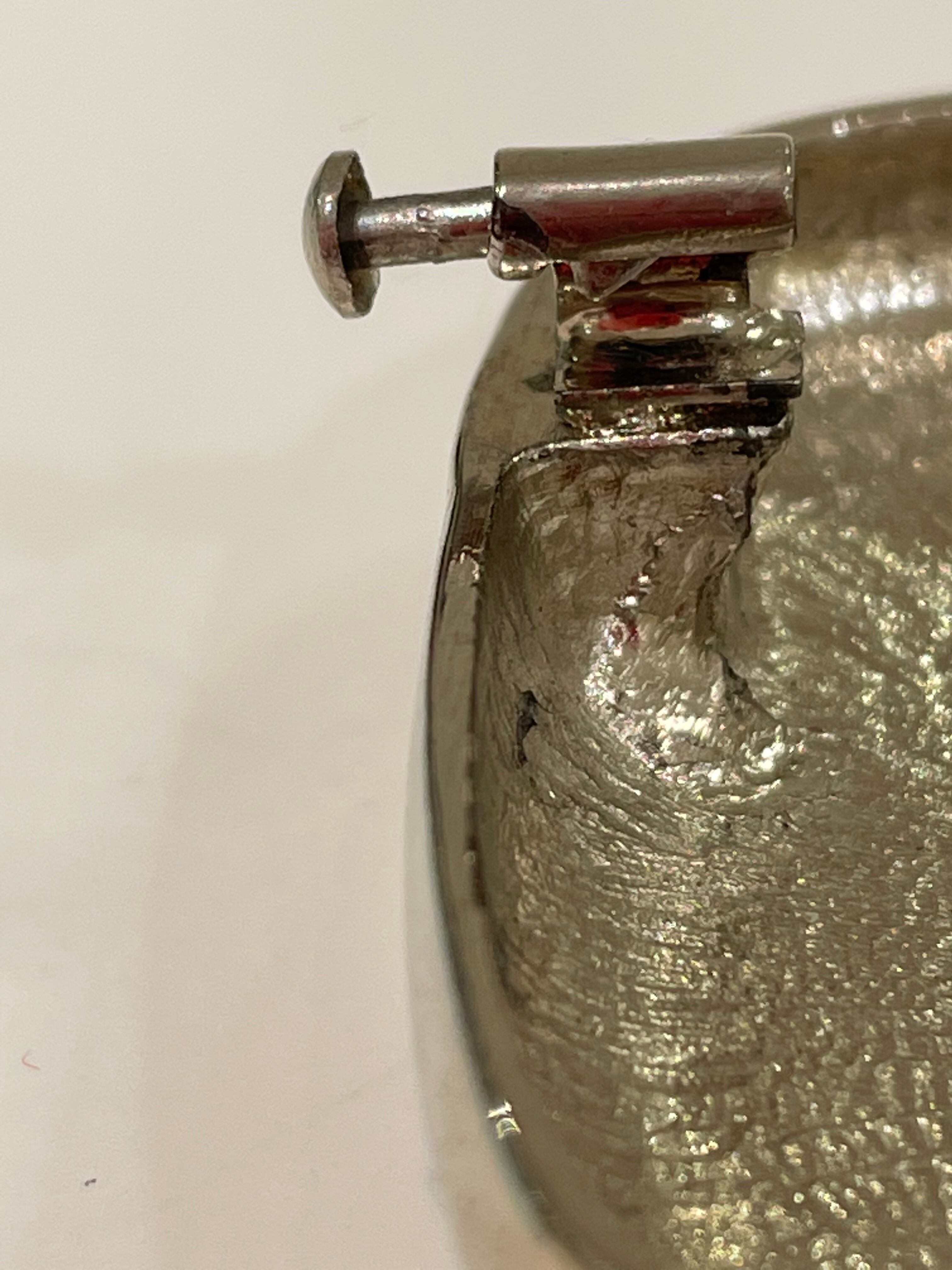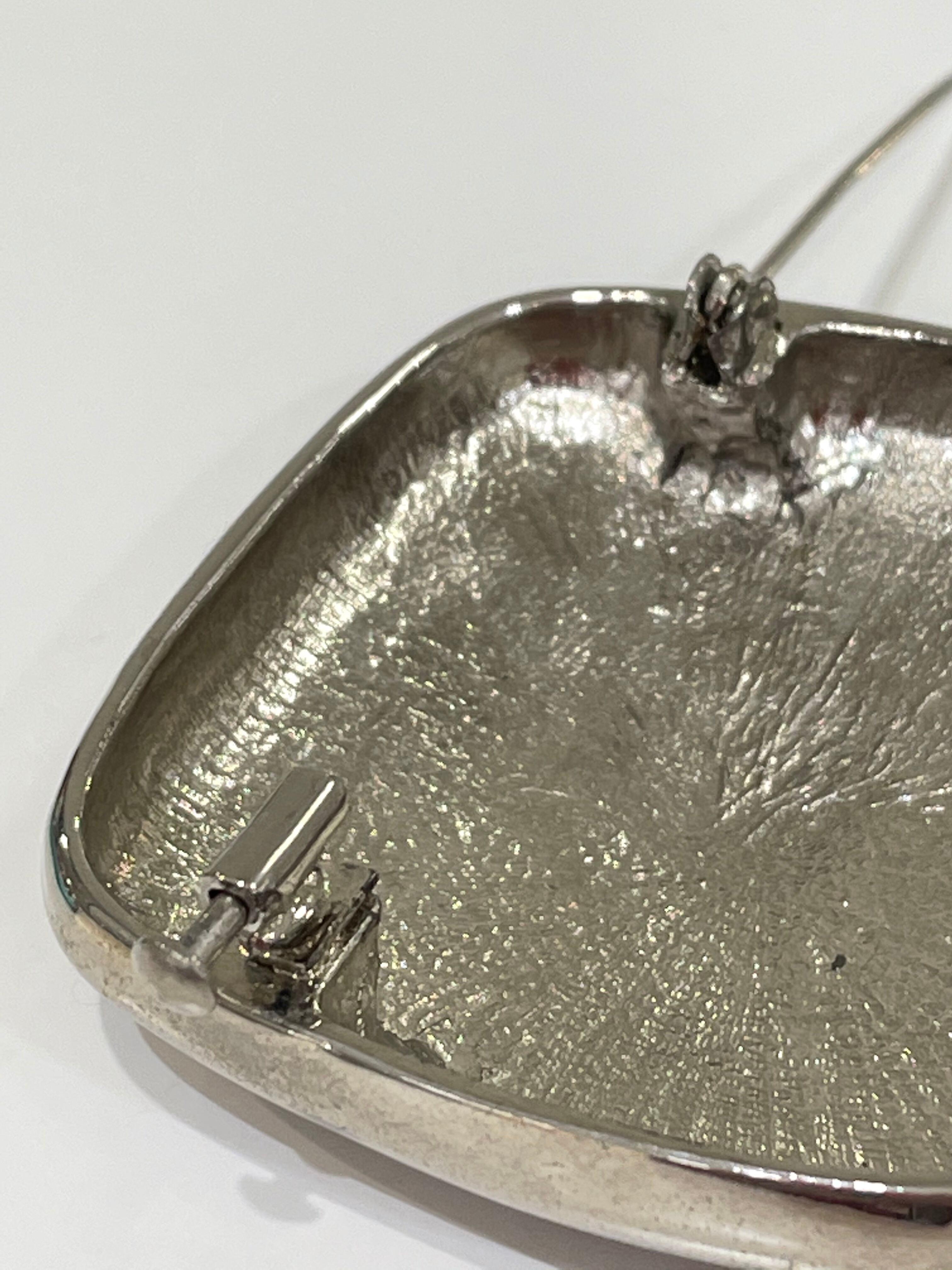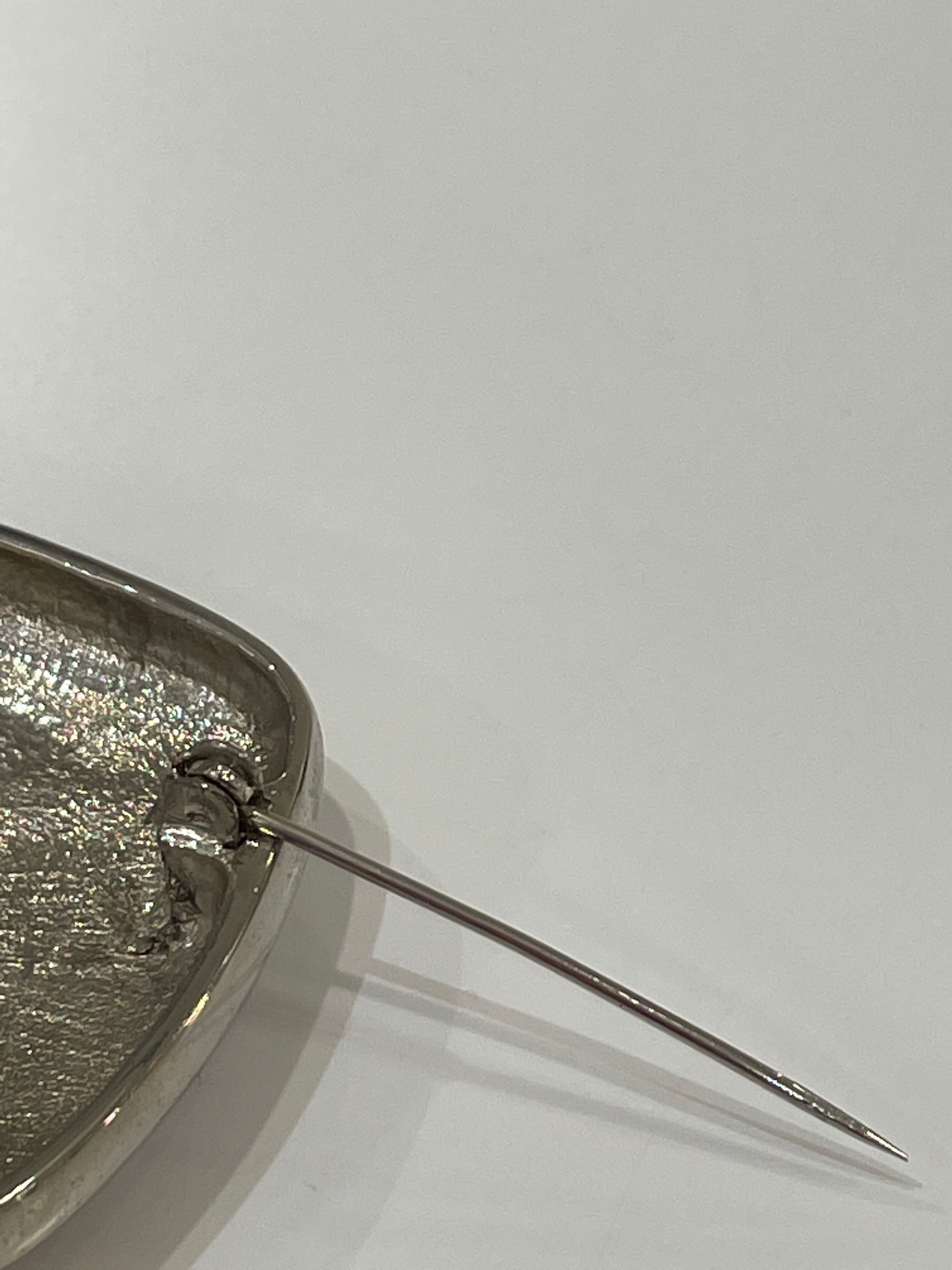 ピンは釘のような形の金具を引いて開閉するデザインです