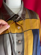 大人っぽいカラーブロックの配色の凝ったデザインの生地