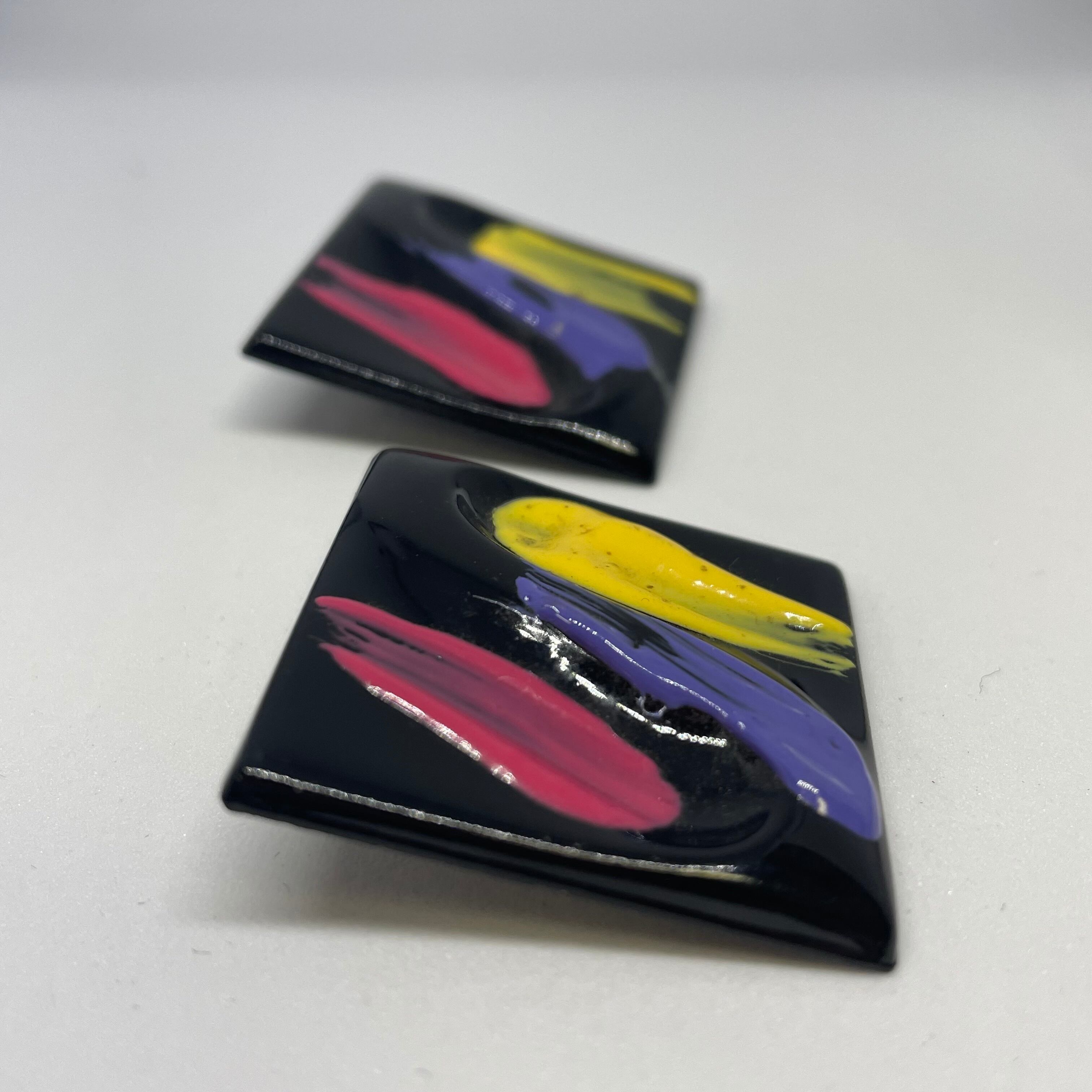 エナメルペイント スクエアピアス(ブラック)