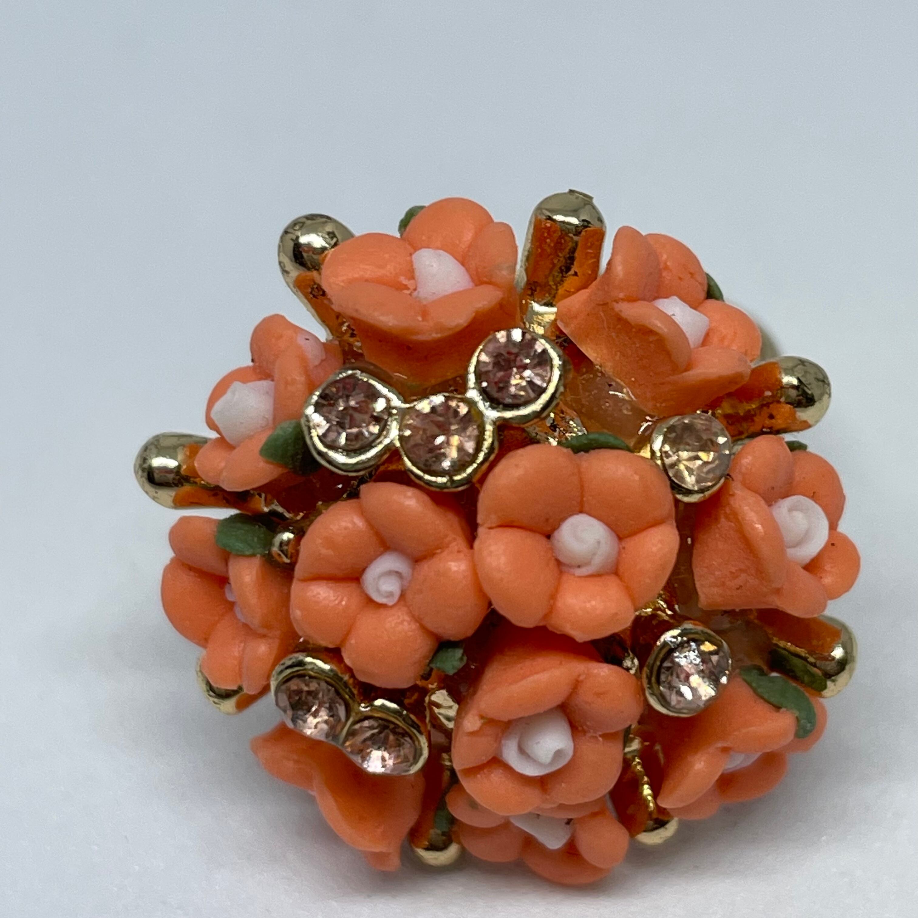 サーモンピンクの小さなお花のカボションと