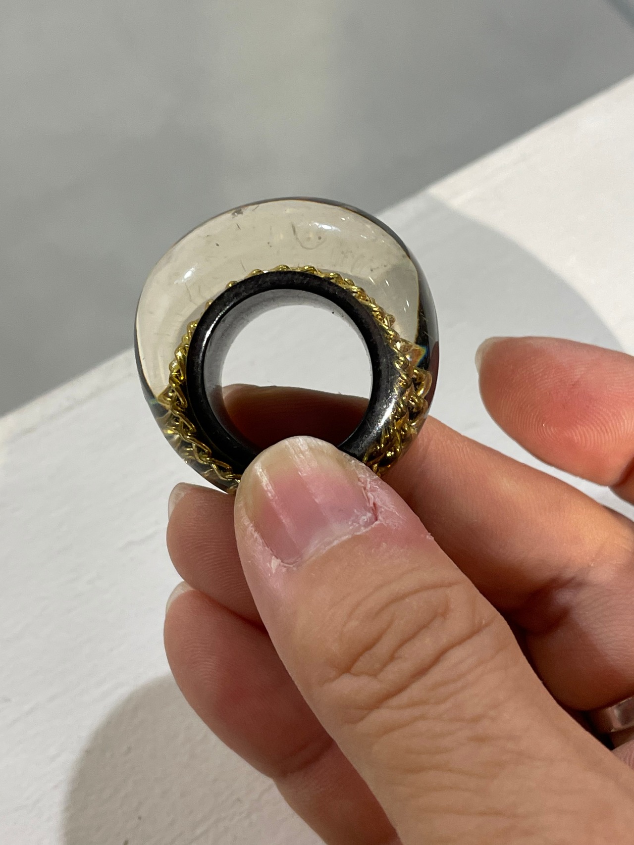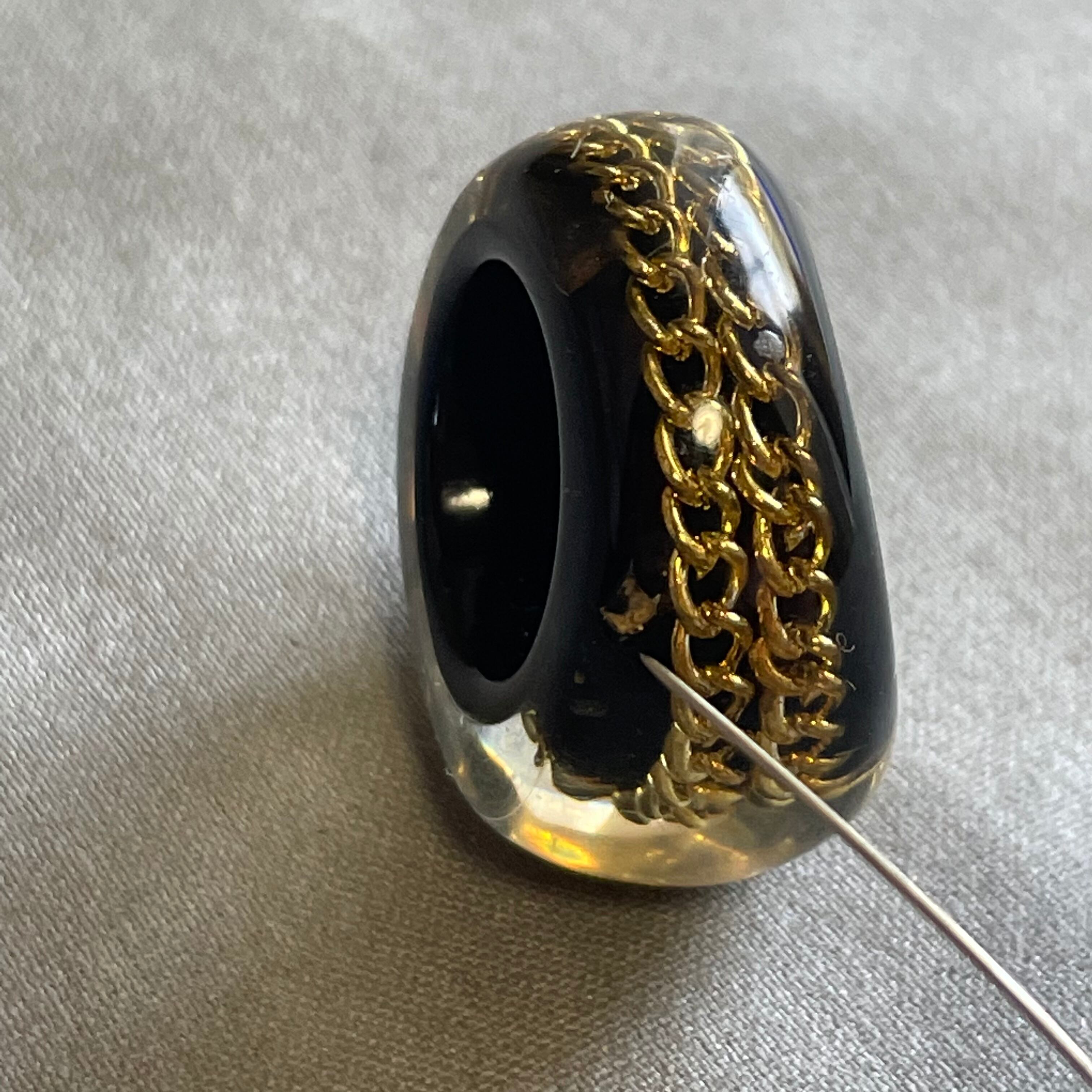 アクリル樹脂の中にゴールドチェーンが