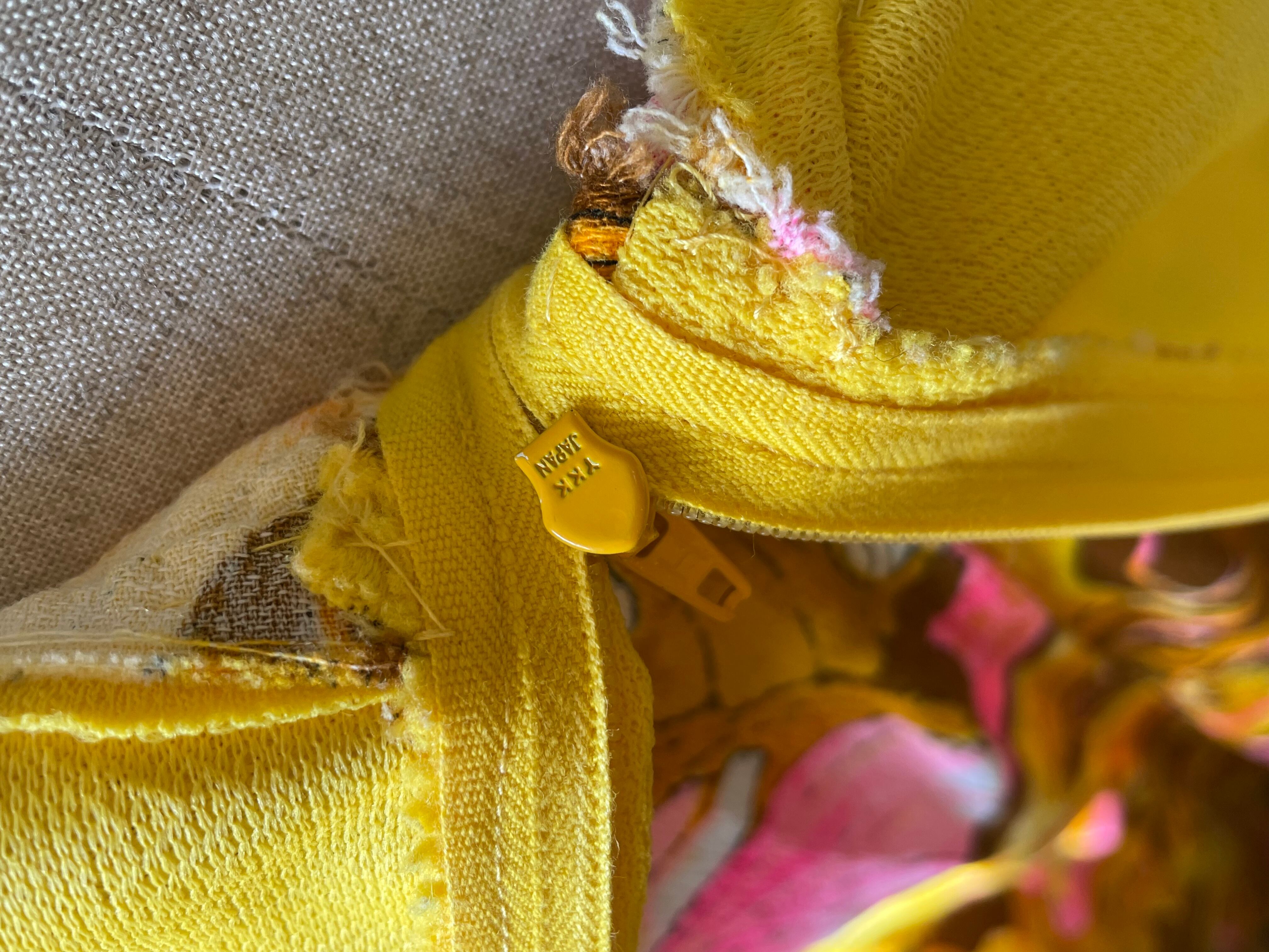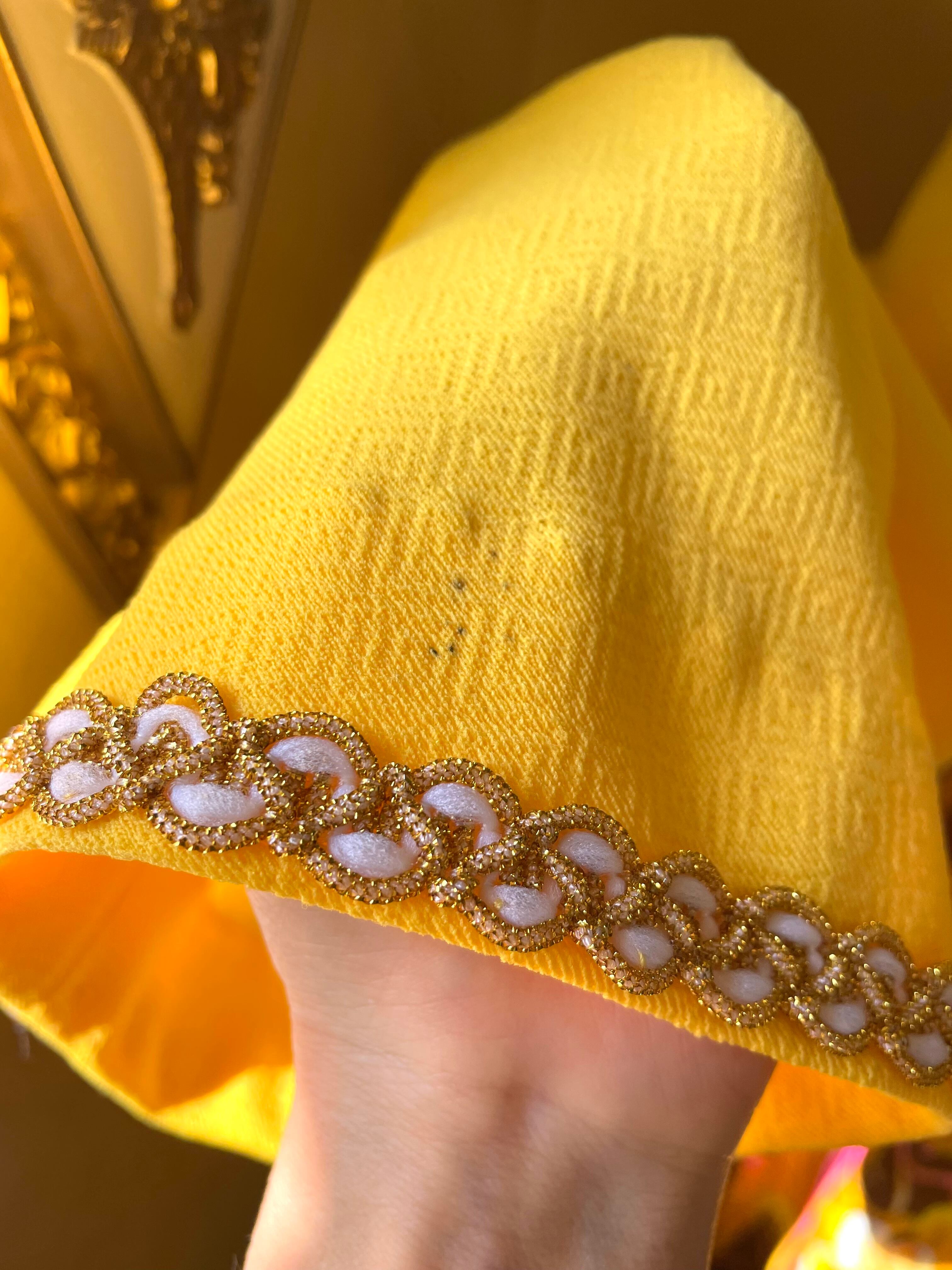 イエロー部分は凹凸のある伸縮性のあるポリジャージでダイヤ柄の地模様